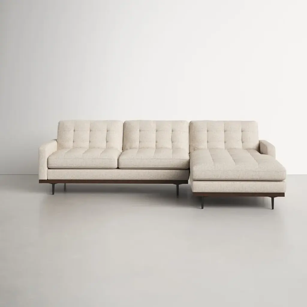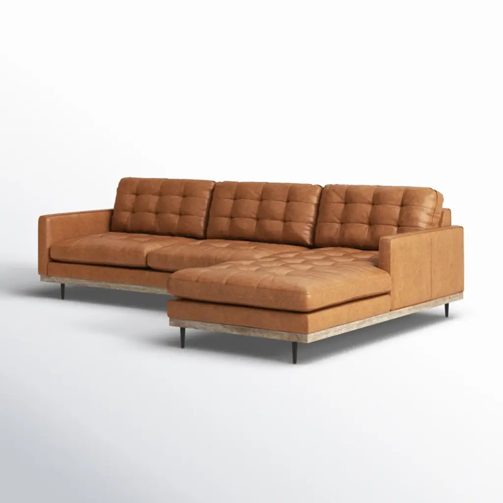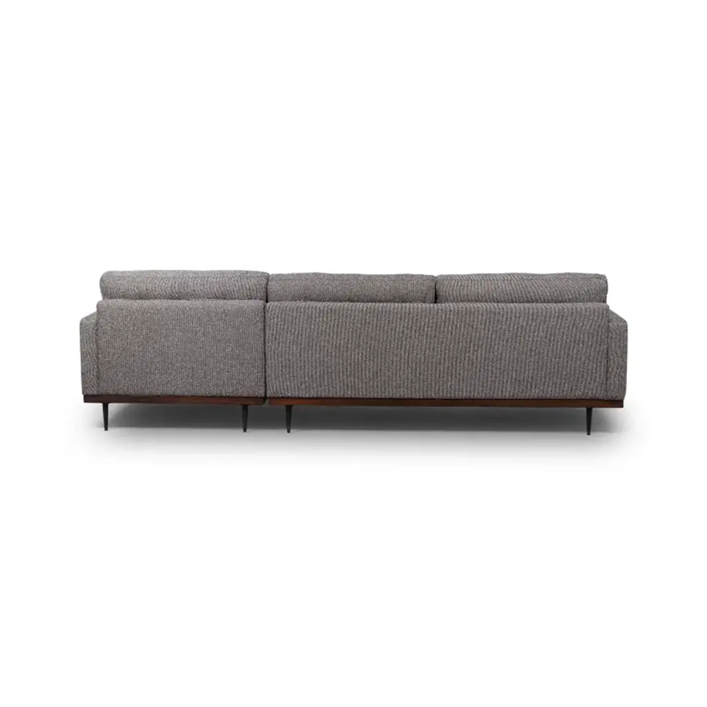This 2-piece sofa-and-chaise sectional elevates your living room with a sleek, modern aesthetic. It's made with a solid poplar wood frame that sits on slim metal legs with a brown hue. This sectional is wrapped in 100% polyester with a perpetual pewter hue, and the cushions are filled with foam and synthetic fiber and supported by sinuous springs to resist sagging. Geometric tufted cushions round out the contemporary look. Plus, the seat and back cushions are removable for easy cleaning.