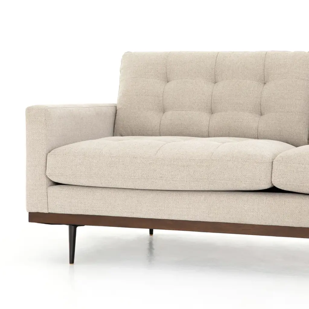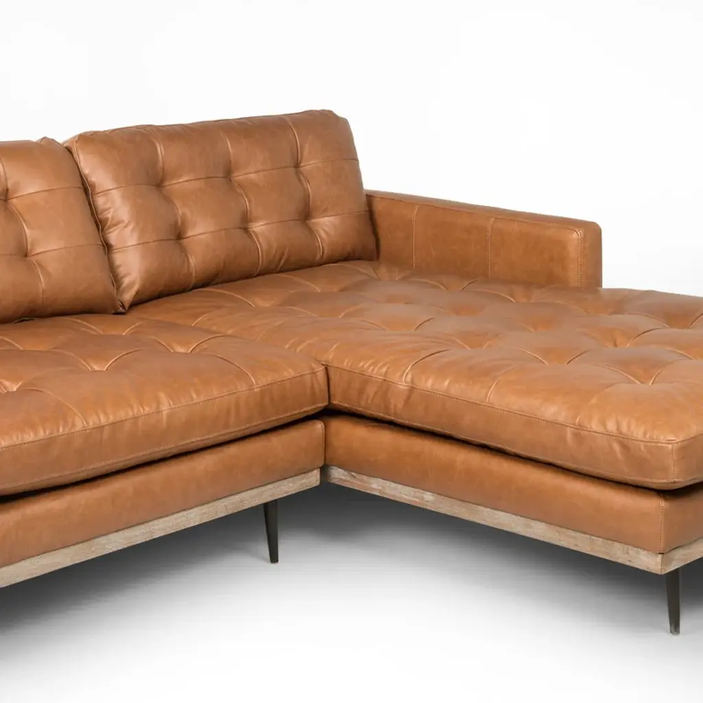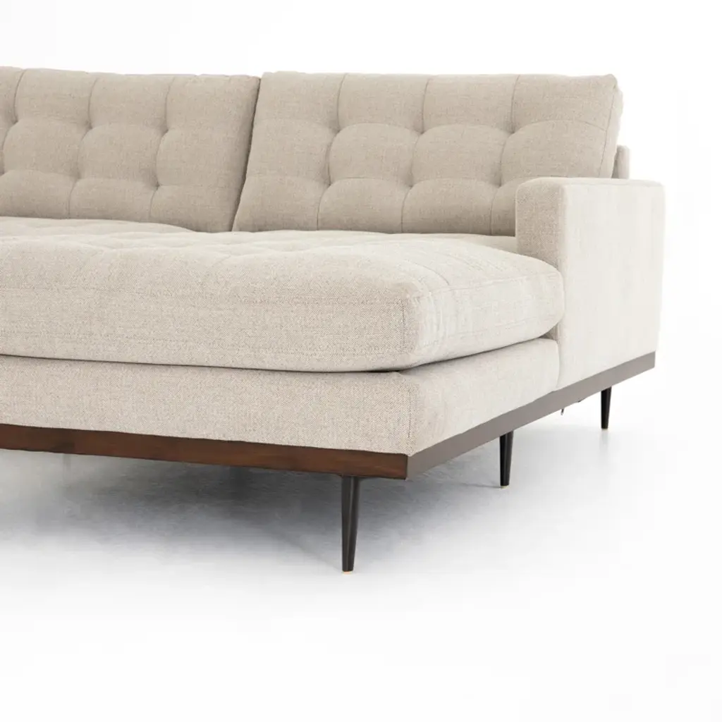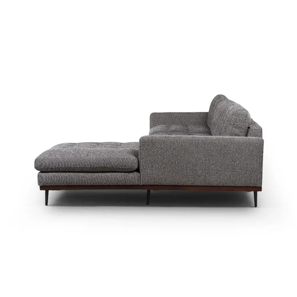 This 2-piece sofa-and-chaise sectional elevates your living room with a sleek, modern aesthetic. It's made with a solid poplar wood frame that sits on slim metal legs with a brown hue. This sectional is wrapped in 100% polyester with a perpetual pewter hue, and the cushions are filled with foam and synthetic fiber and supported by sinuous springs to resist sagging. Geometric tufted cushions round out the contemporary look. Plus, the seat and back cushions are removable for easy cleaning.