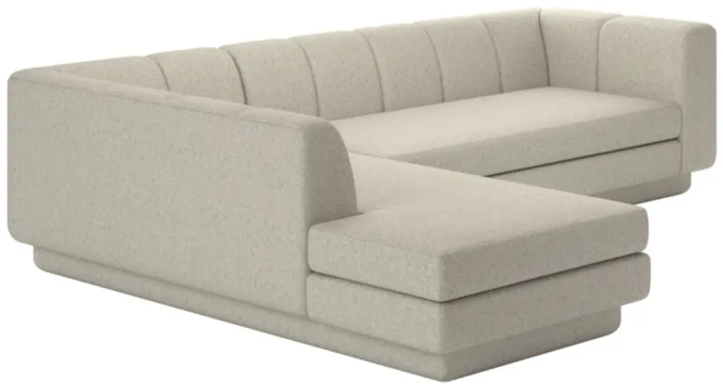 Taking stylistic nods from 1970s Italian design and the designers' own laidback Southern California aesthetic, two-piece sofa by Lawson-Fenning has generous proportions for gathering and relaxing. A deep seat is complemented by a relaxed back with wide-set channel tufting. Each piece is assembled by hand to ensure a level of quality befitting the design. CB2 exclusive.