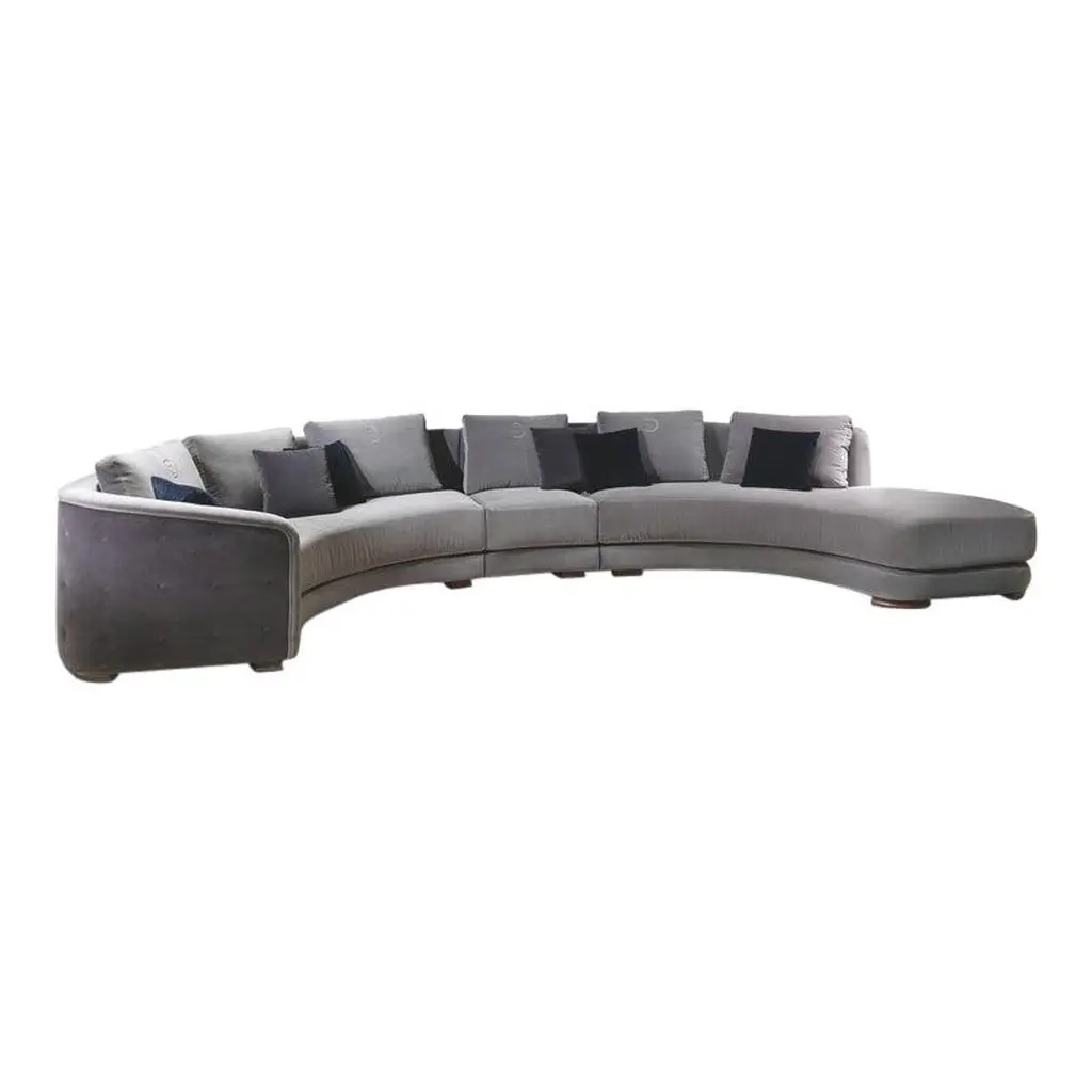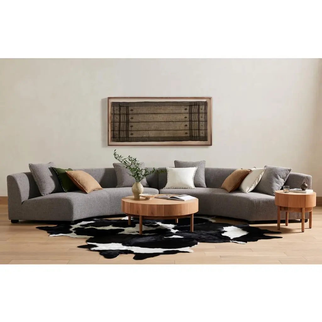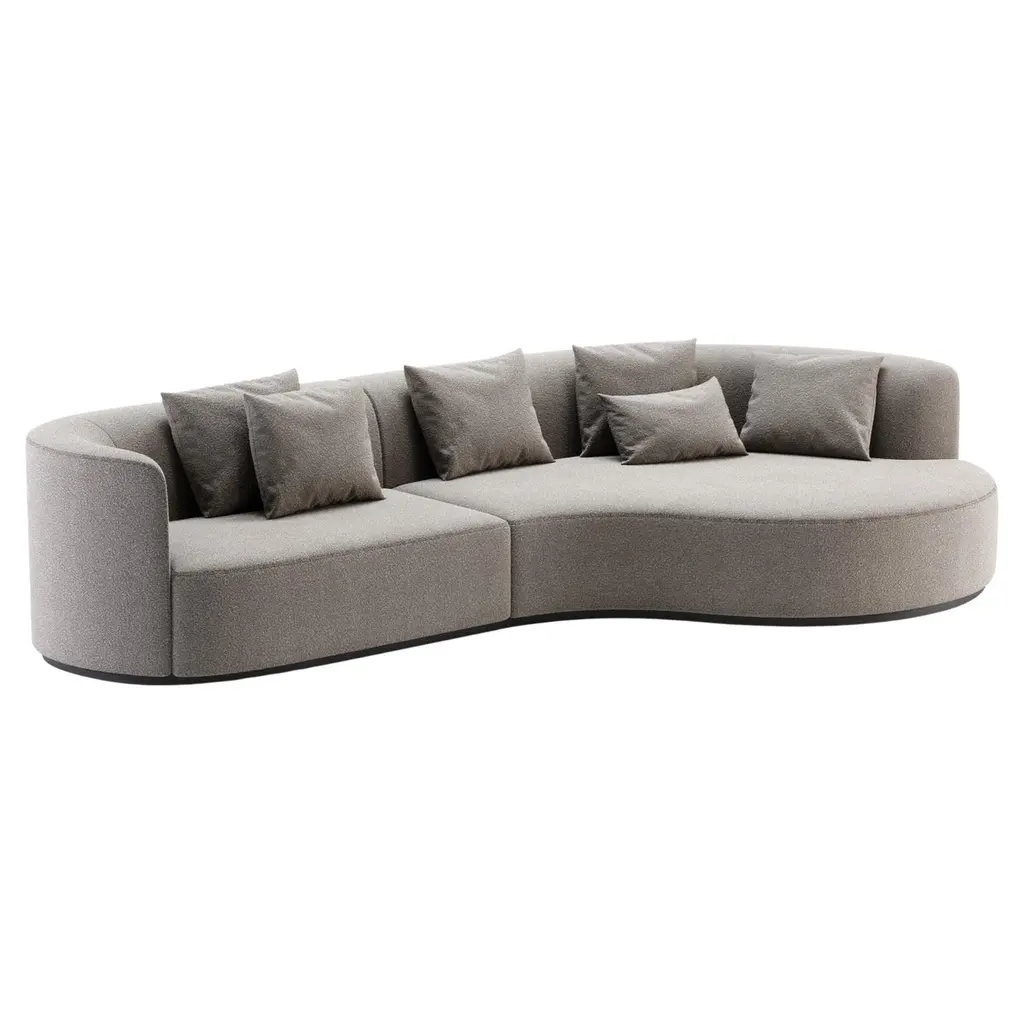 Zoe Modern Grey Upholstered Black Birch Wood 2 Piece Curved Sectional - 176"wx67"d