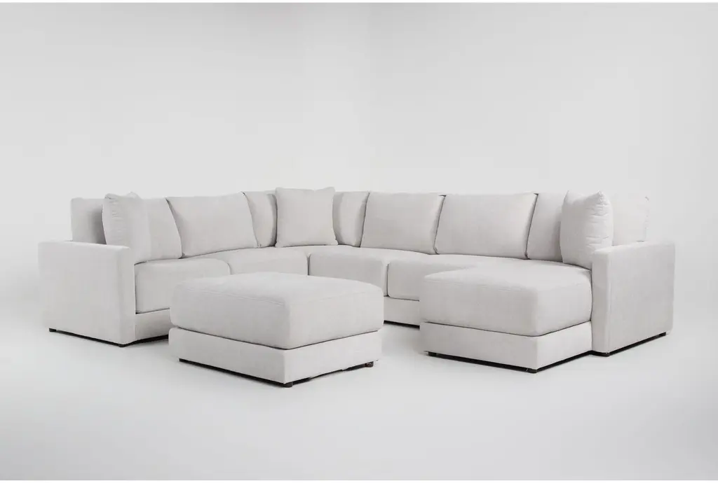 Zoeller Sand Beige Fabric 127" 2 Piece L-Shaped Sectional With Right Arm Facing Sofa + Left Arm Facing Corner Chaise & Ottoman