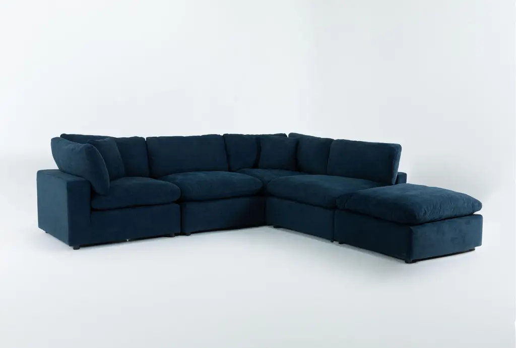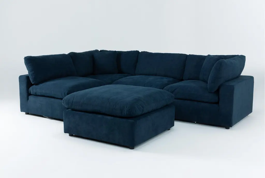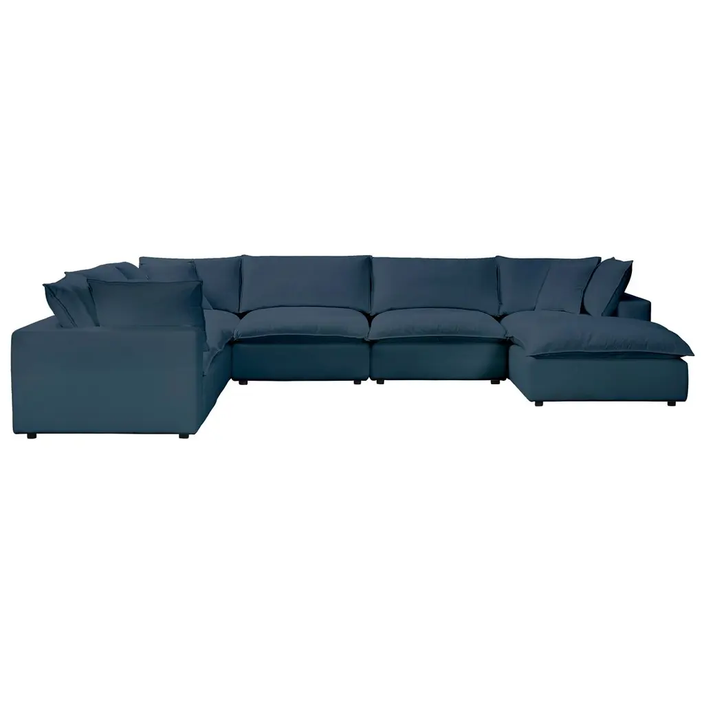 Zone Blue Fabric 5 Piece Modular L-Shaped Sectional with 2 Corners, 2 Armless Chairs & Ottoman