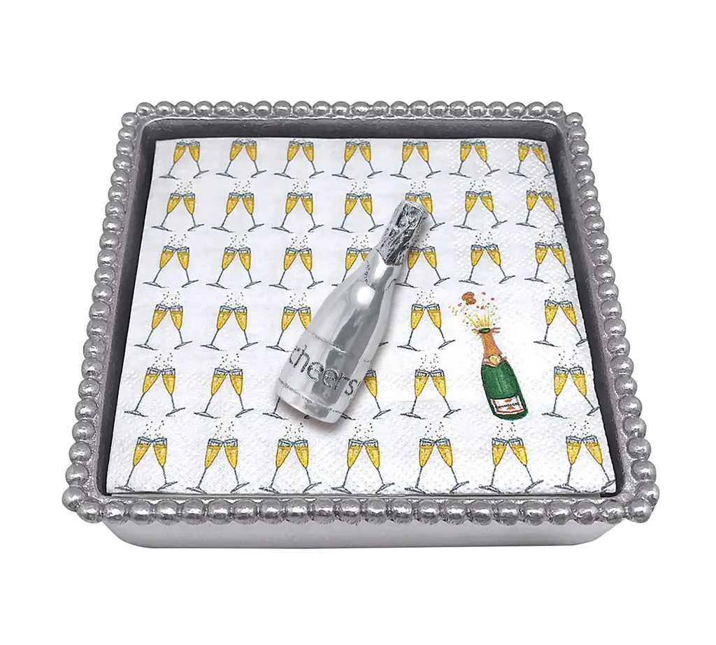 From brunch to birthday bashes, the Champagne Napkin Box with Napkins is a must-have for any occasion that calls for a toast. This vessel holds fun or cheeky cocktail napkins (set of 20 included) and keeps them in place with a whimsical weight.