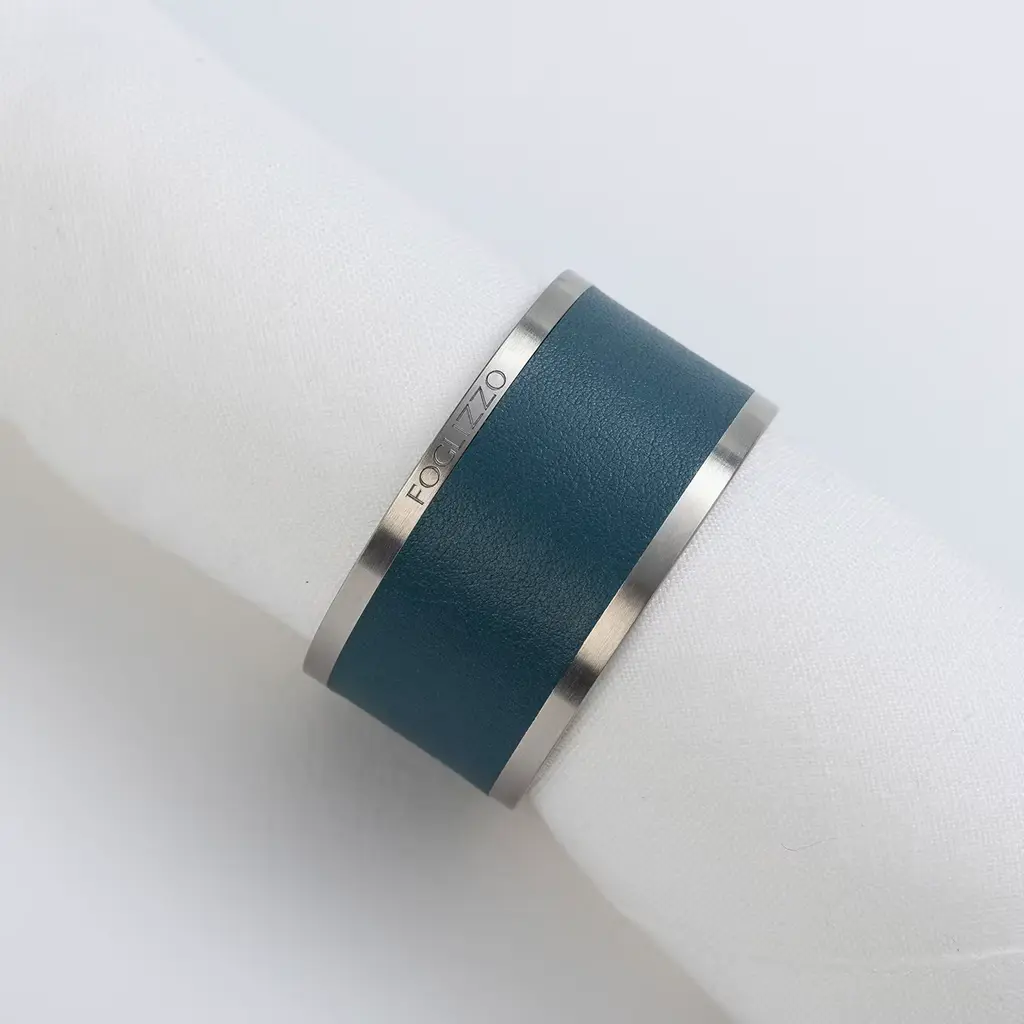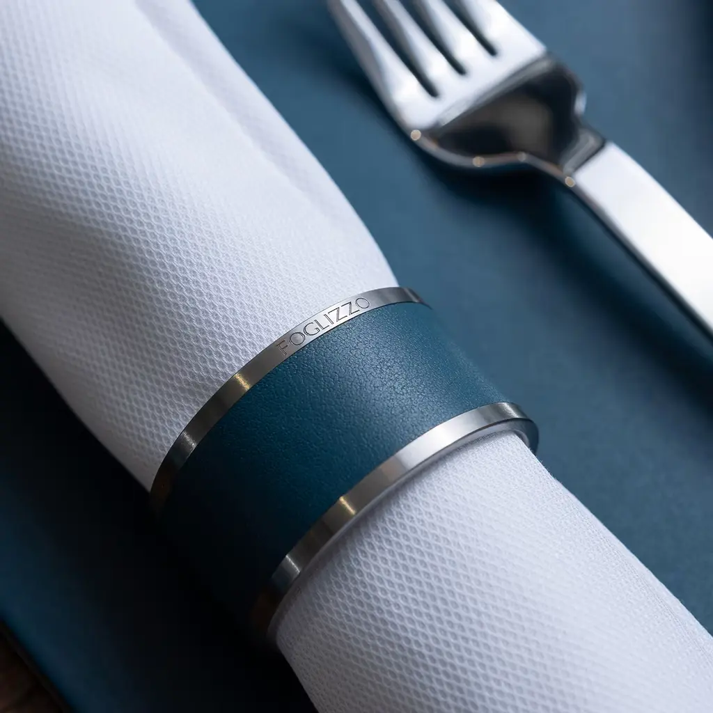 The simple napkin holder adds a striking accent to both modern and classic tables. The simple silhouette is crafted from stainless steel, partially covered with exclusive Foglizzo leather. Please, ask the Concierge service for further information.