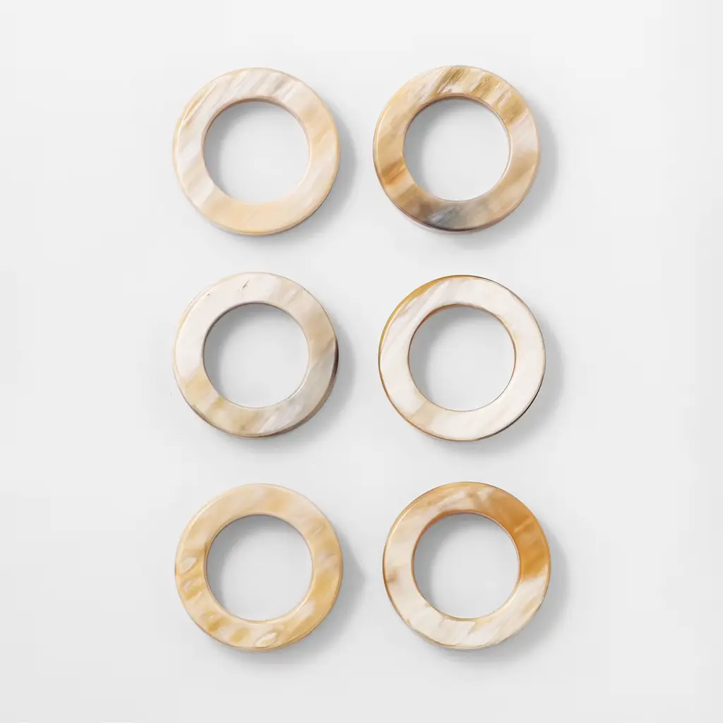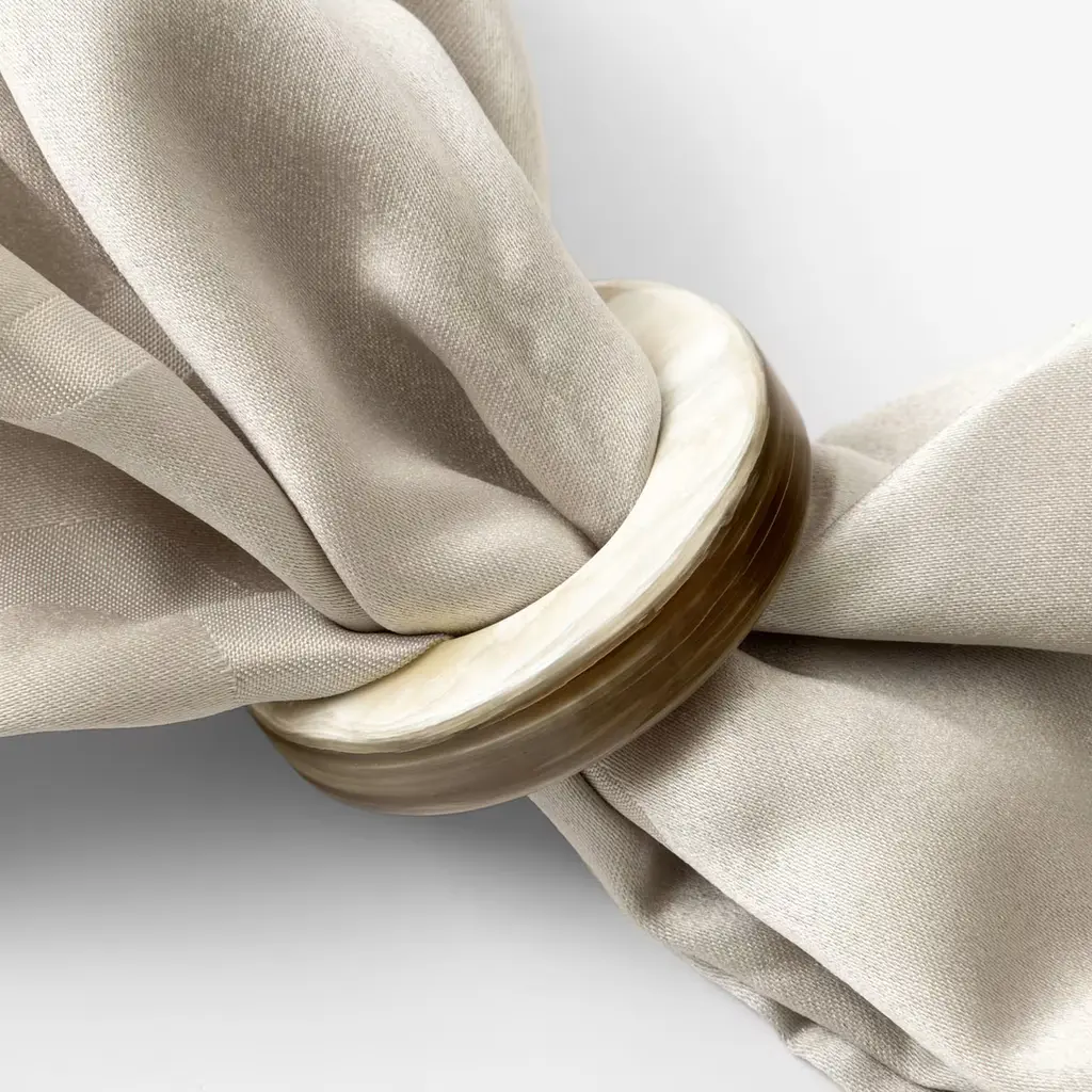 Superbly handcrafted by master artisans, the prized white horn is shaped into dainty rings that accentuate the captivating natural colors and striations. Finished with wax, the set is delivered in a handmade box with a padded, satin-lined interior, perfect for safekeeping. Due to the nature of the product material, each ring may be slightly different in coloring as visible in the images. Part of the Weaving Collection.