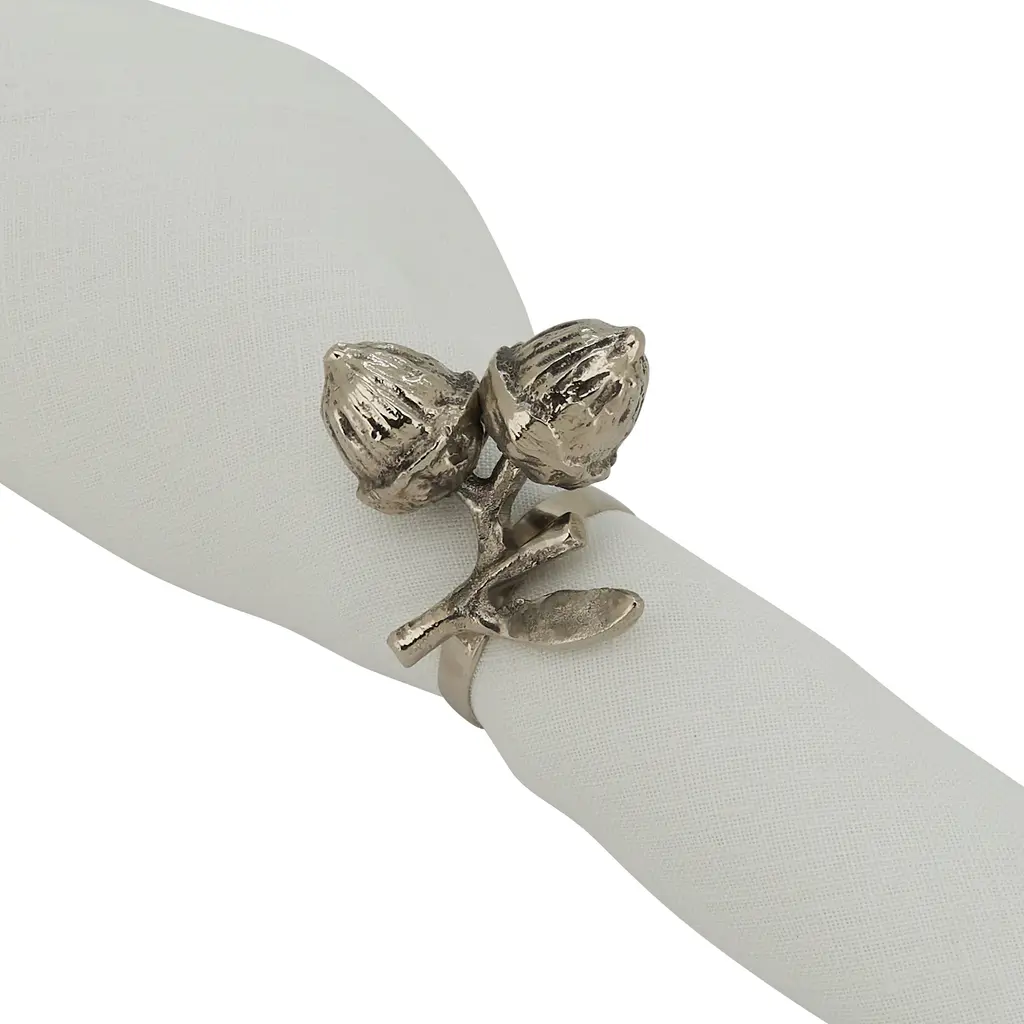 Simple, elegant and timeless, this gorgeous set of Acorn Design Napkin Rings brings your table décor to a whole new level. Easy to dress up for special occasions, as well as pare down for casual entertaining, the set is highly versatile so you'll get plenty of use out of it. The silver finish adds a refined touch to your place settings.Features: