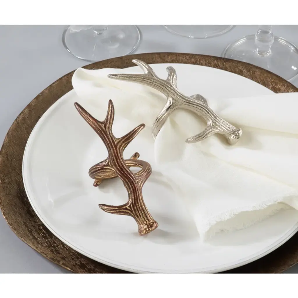 Unique table decor may be hard to come by but you'll definitely hit the mark with these antler shaped napkin rings. They'll make you and your diners think of mountain lakes and cabins hidden in the woods. The antlers feature subtle lines to highlight the markings of a tree trunk.
