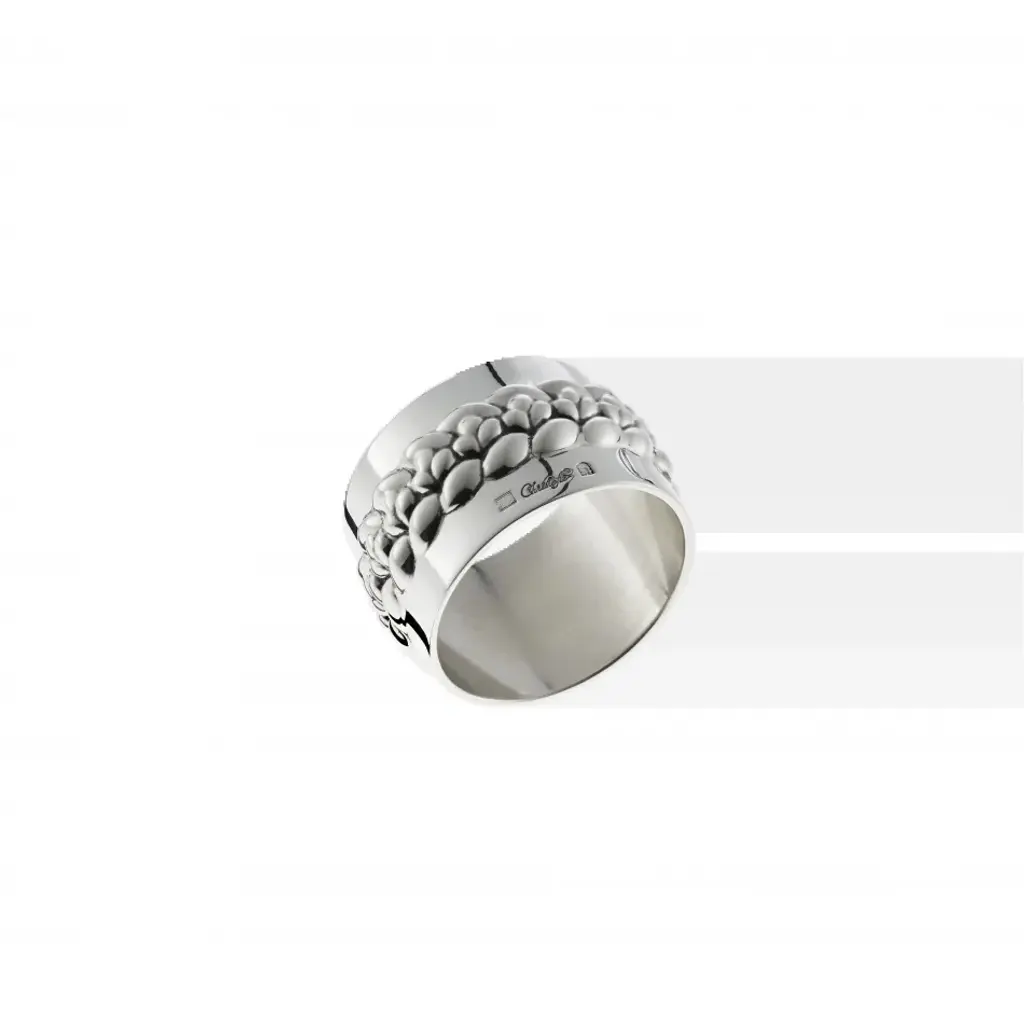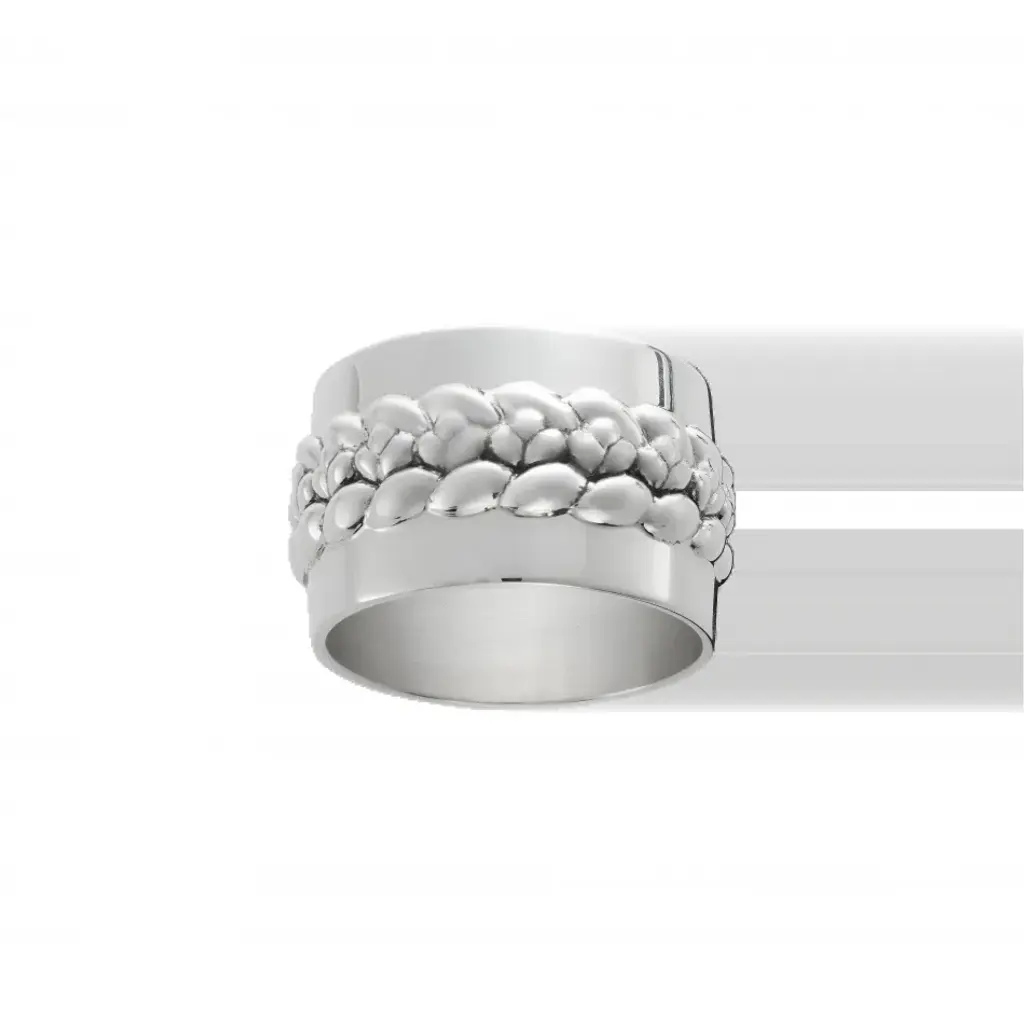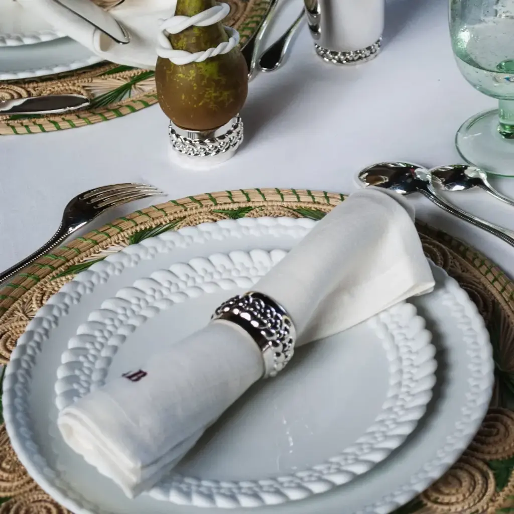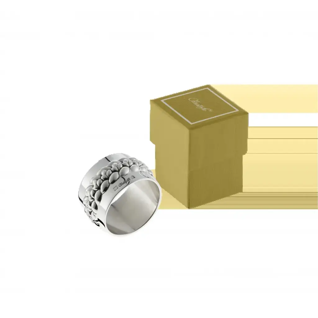 Discover Babylone Napkin Ring. The patina of the generous braid adds character and volume to the piece. Thanks to its creations in silver, Christofle is a symbol of luxury and elegance. Since its founding in the mid-19th century, it has been a continous innovative force and has infused each era with a new art of living. Thus, over time, this prestigious company has revolutionized styles, techniques, and methods for the production and distribution of silver plate and the decorative arts. A player in and privileged witness to the evolution of taste, customs, and traditions, Christofle has always seen its name associated with major creative trends, renowned artists such as Man Ray or Jean Cocteau, avant-garde architects such as Gio Ponti, and modernist silversmiths such as Lino Sabattini and Christian Fjerdingsatd, as well as present-day designers such as Andrée Putman, Martin Szekely or Ora ïto. Today, as in the past, whether gracing the tables of emperors, princes, or maharajas, in palaces, on board the Trans-Siberian Railway, Orient Express, or transatlantic ocean liners, or in the contemporary restaurants, Christofle continues to make an impression.