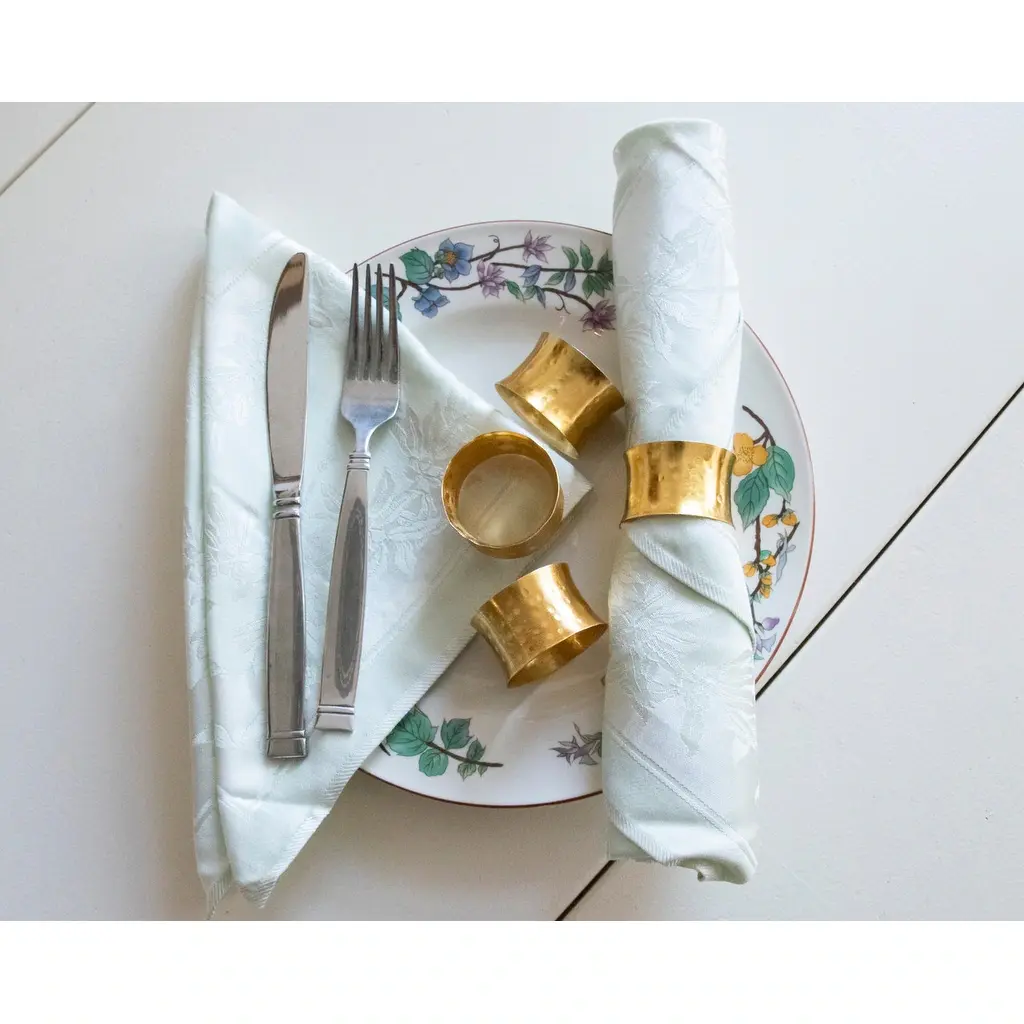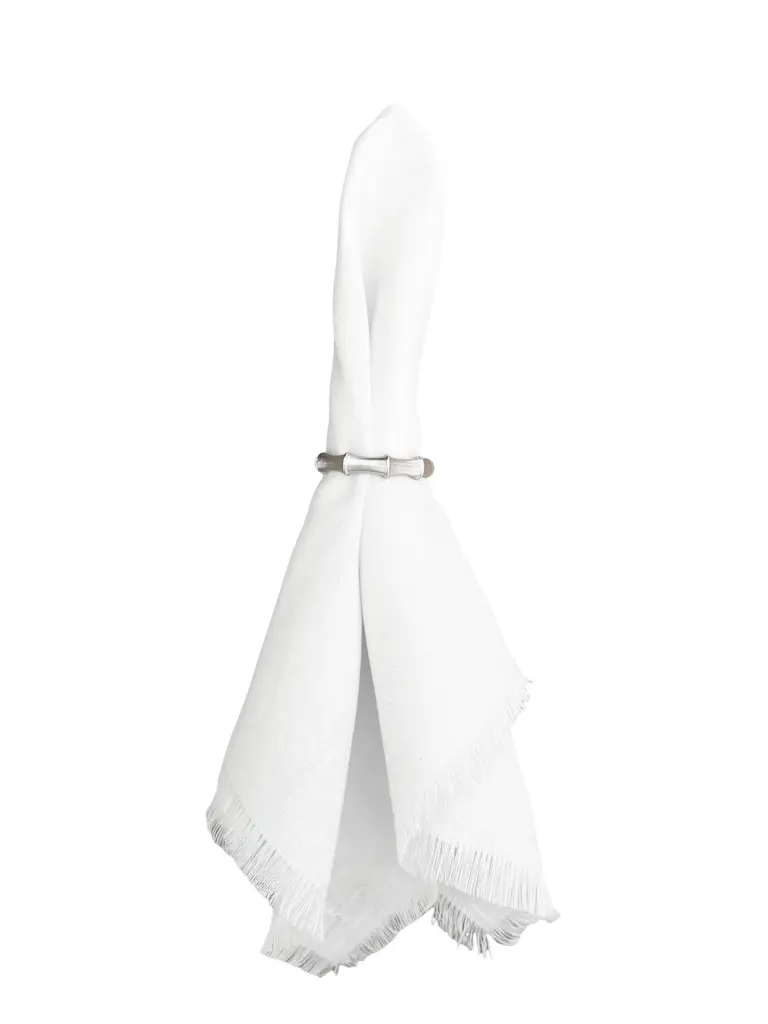The Bamboo Metal Napkin Rings are a versatile choice, pairing perfectly with our stylish napkins to enhance any modern tabletop setting. Set of 4. Matte Silver Zinc Metal. Imported.