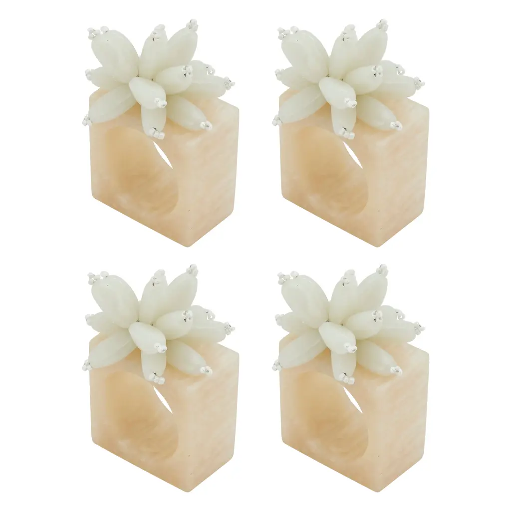 Beaded Enchanted Bloom Resin Napkin Ring (Set Of 4) - Ivory - Set Of 4