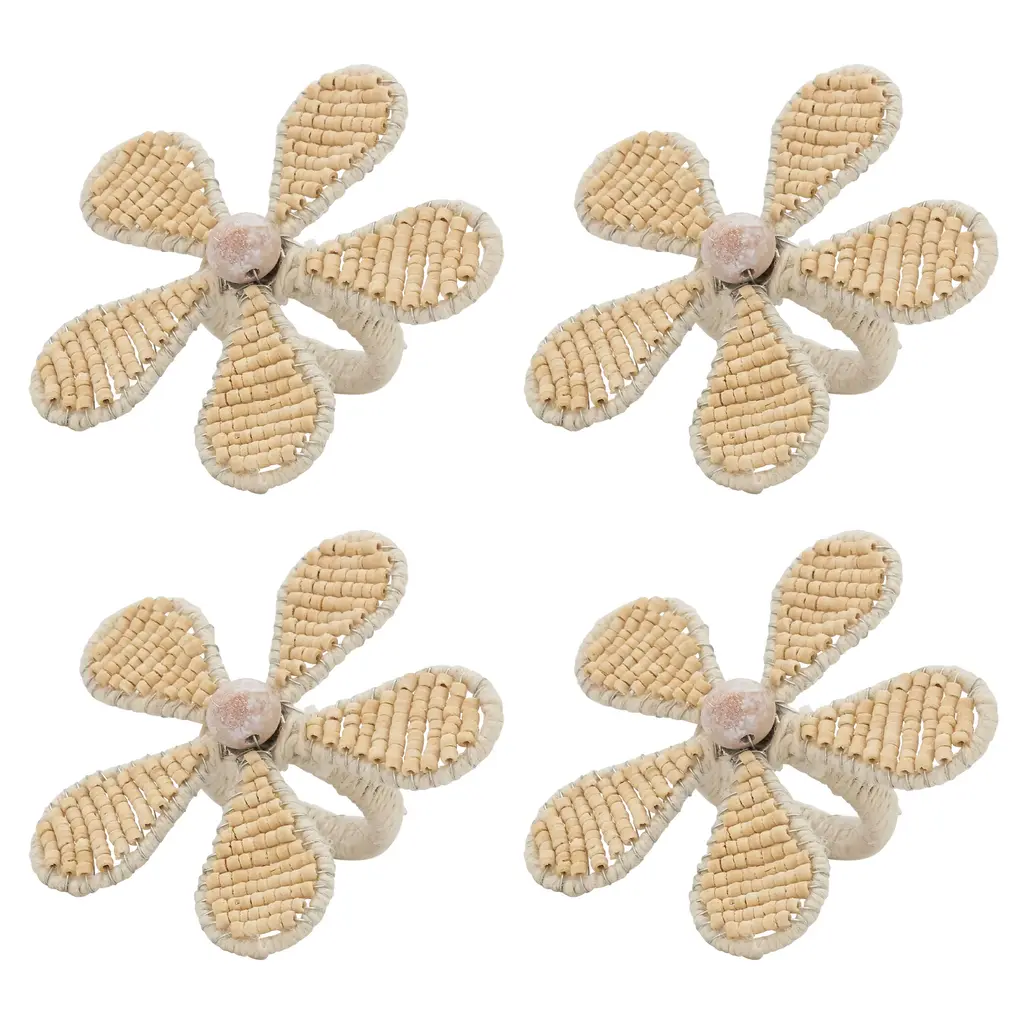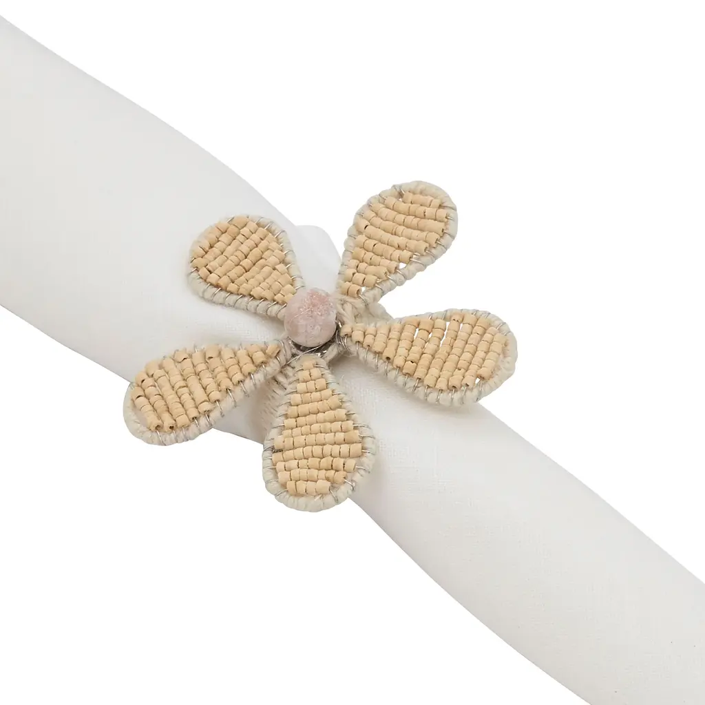 Perfect for linen table napkins and neutral tones, these Beaded Flower Design Napkin Rings are stylish and natural at the same time. The flower petals brings depth and dimension to the tabletop, while the wooden beads and cotton thread add texture. It's a great way to elevate the look of a casual dining table.