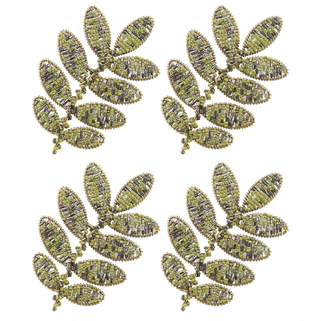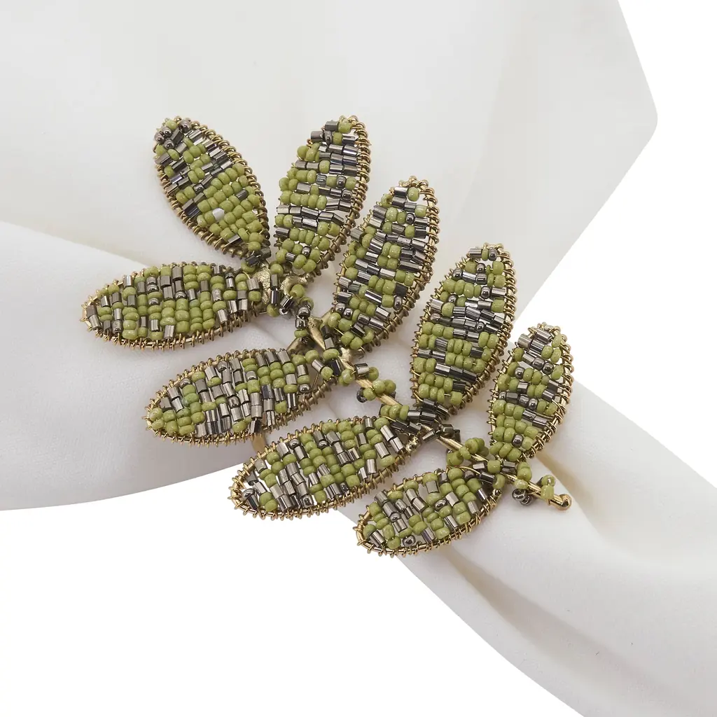 Beaded Napkin Rings With Leaf Design (Set Of 4) - Green - Set Of 4