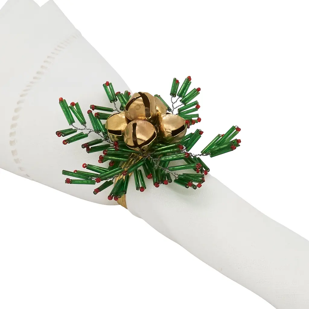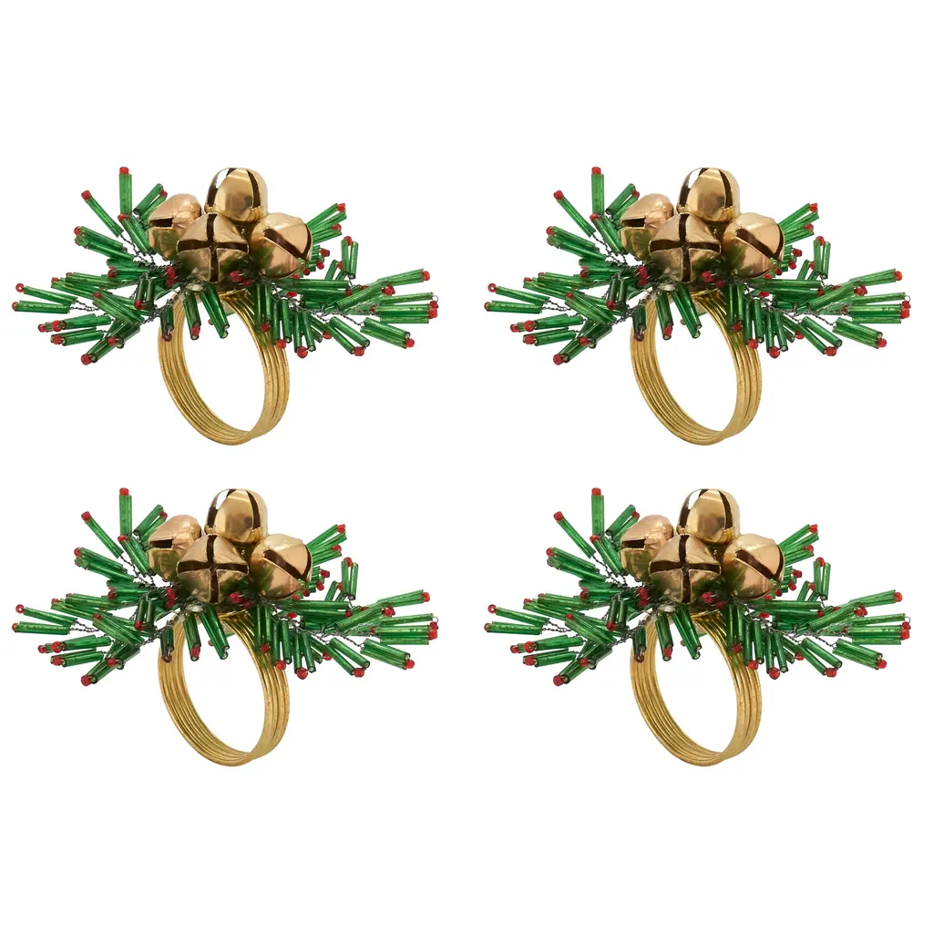 This joyful set of Beaded Snowflake and Bells Napkin Rings is the perfect finishing touch for your holiday place settings. It brings cheer and color to the tabletop, as well as a playful note. Featuring a classical Christmas motif, it's easy to pair with a wide range of holiday décor.Features: