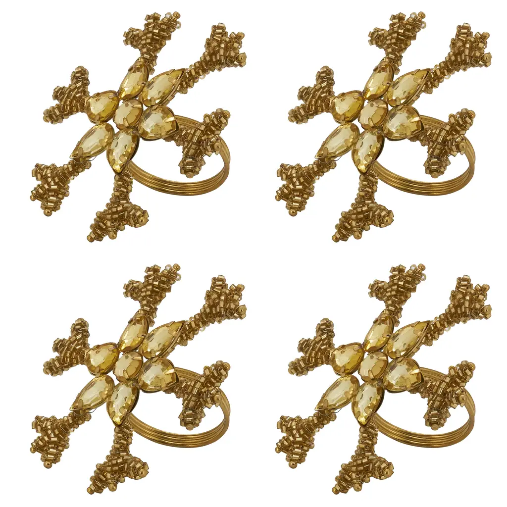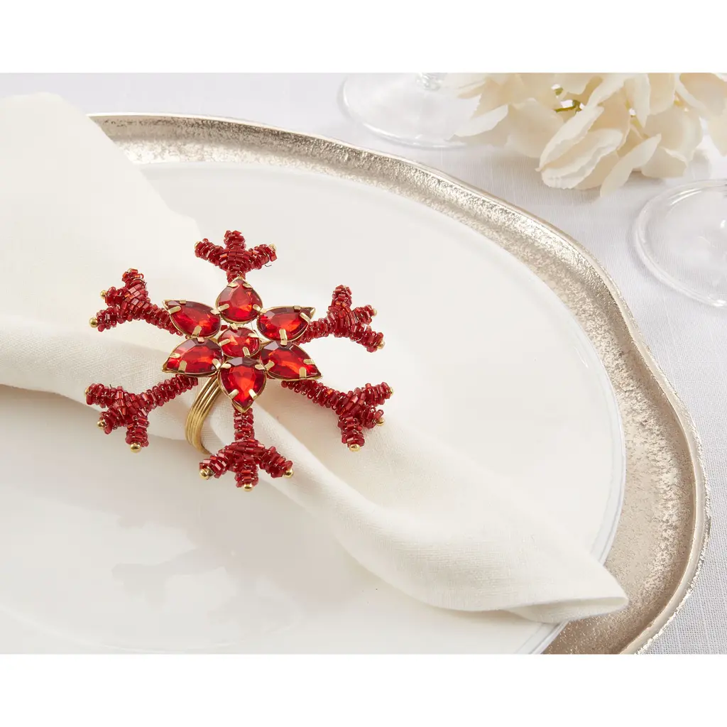 Bring Winter's magic straight to your table décor with this gorgeous set of Beaded Snowflake Design Napkin Rings. They add sparkle and glimmer to every place setting with their bejeweled finish and glistening design. The set is perfect for the holiday season, especially for celebrations, entertaining guests or special occasions.Features: