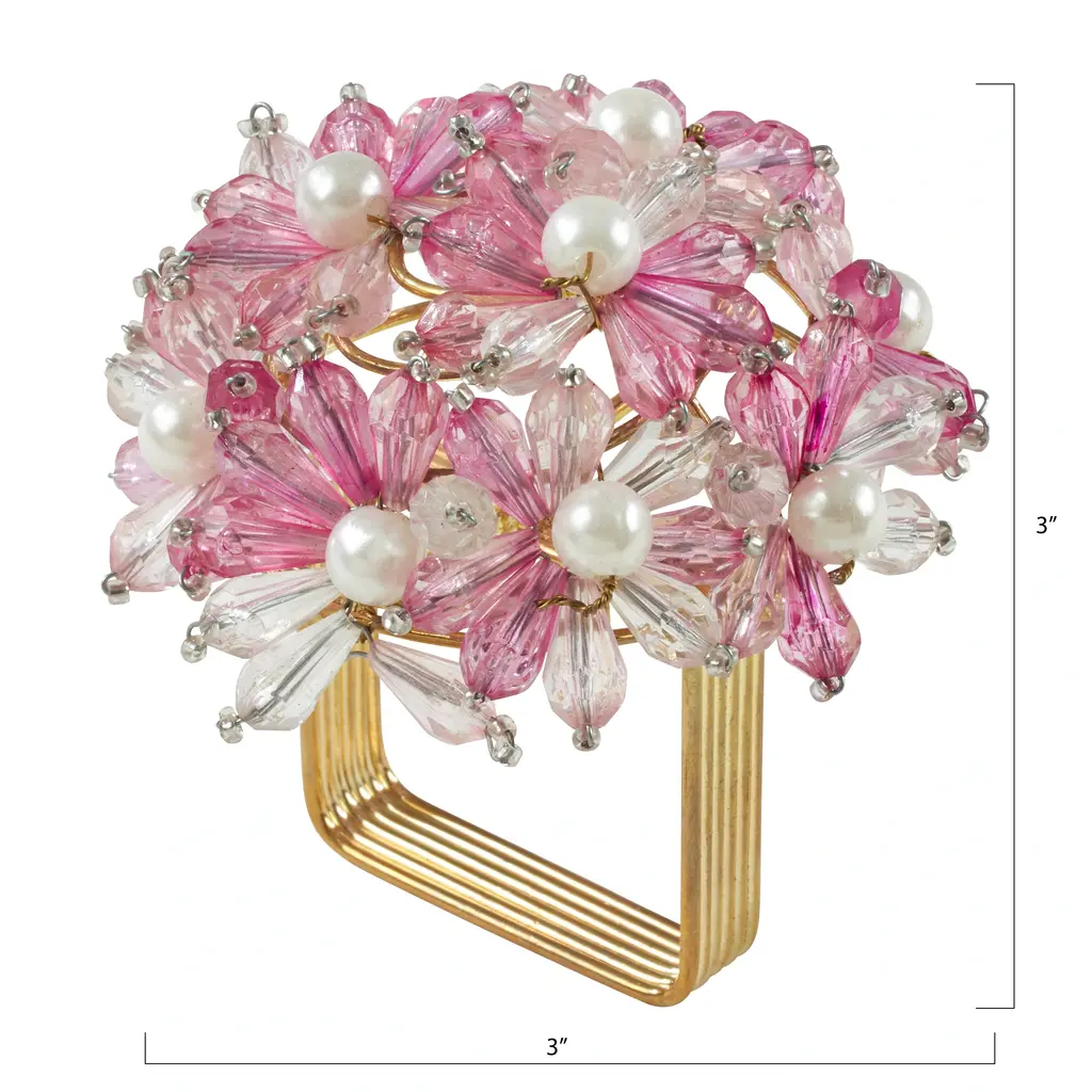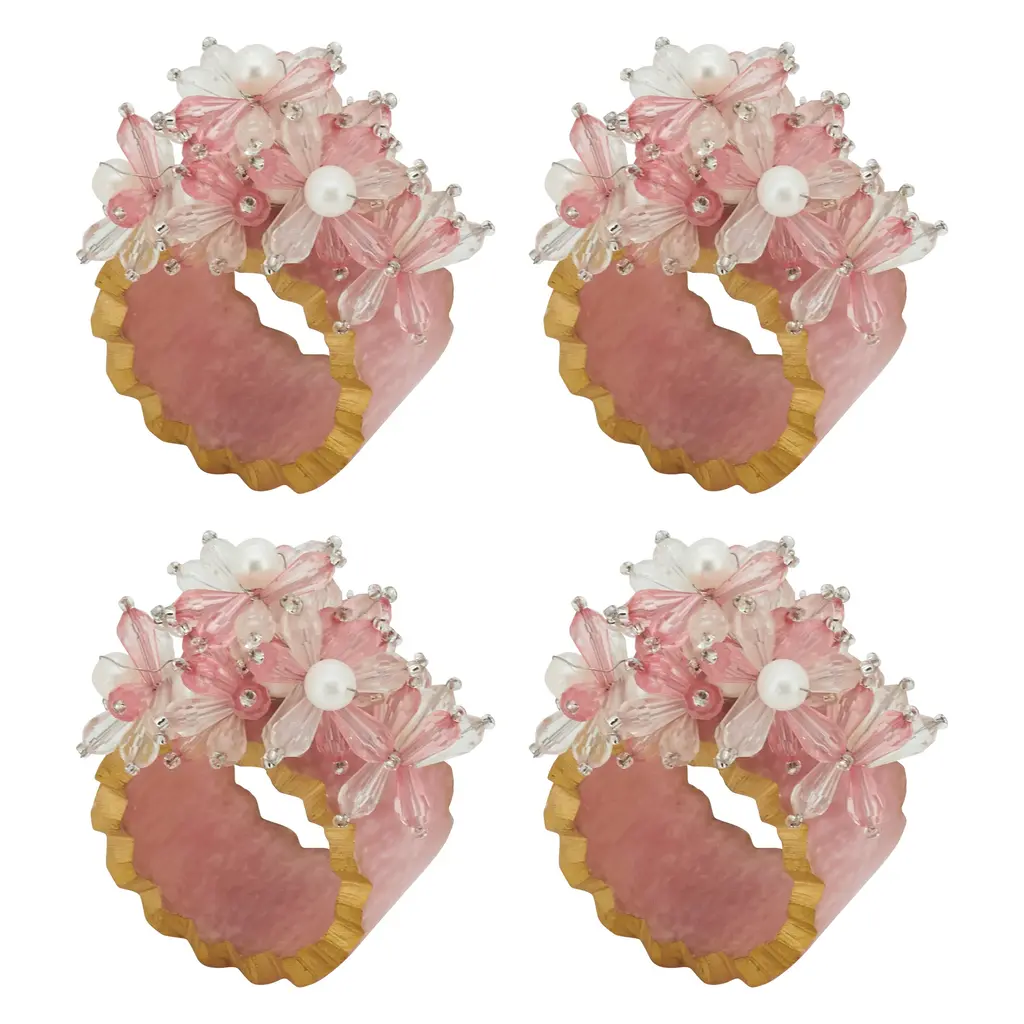 Beaded Petal Delight Resin Napkin Ring (Set Of 4) - Pink - Set Of 4