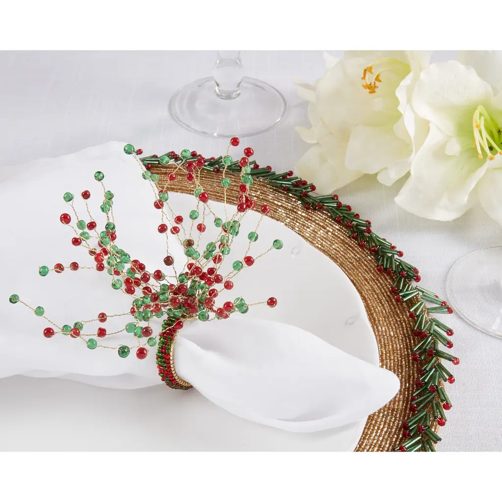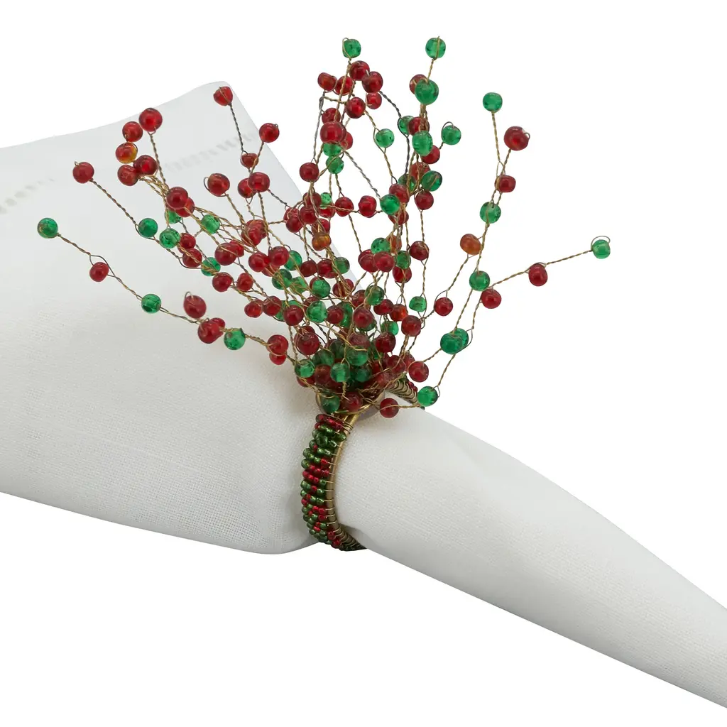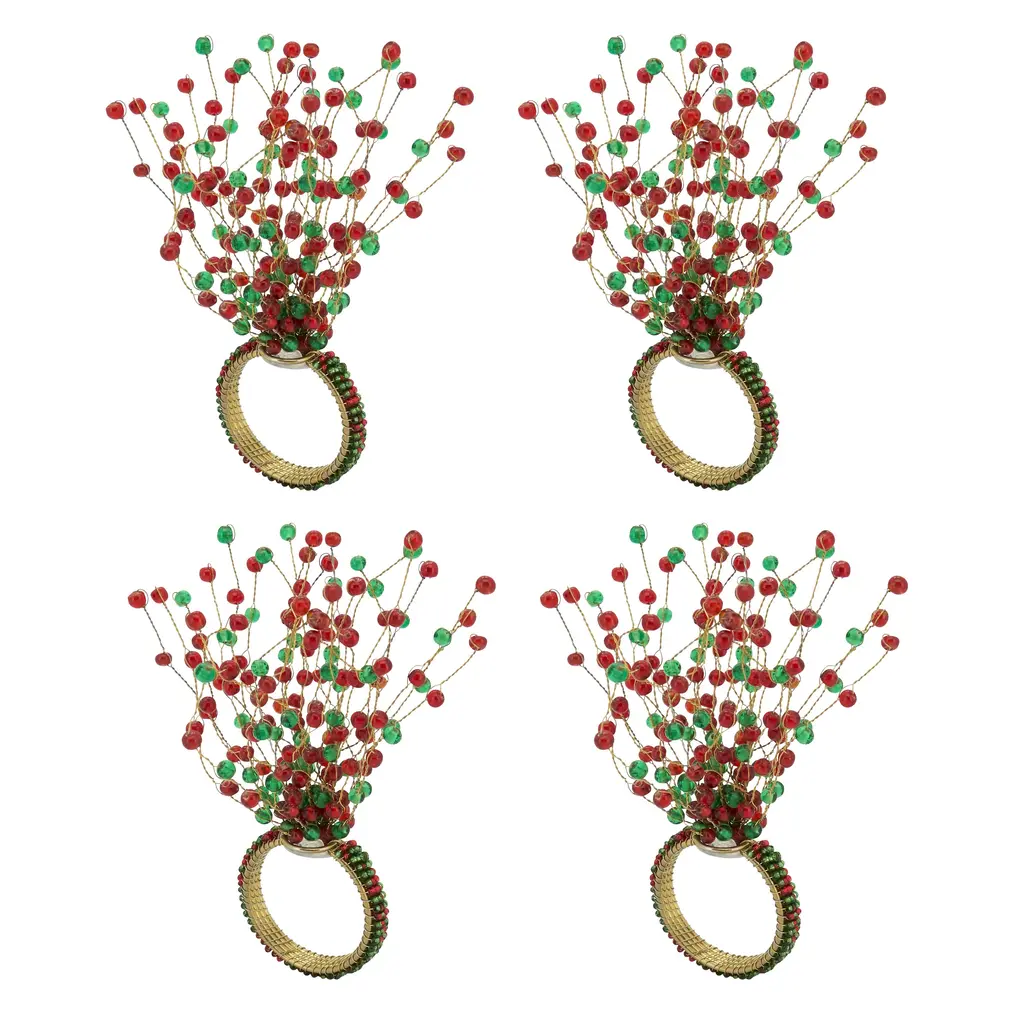 Beaded Spray Design Napkin Ring (Set Of 4) - Set Of 4 - Red/green
