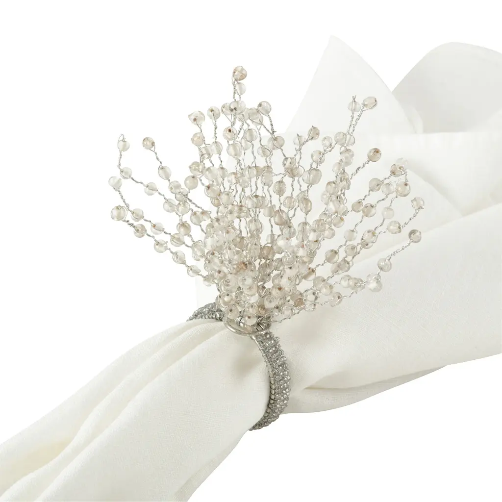 Beaded Spray Design Napkin Ring (Set Of 4) - Set Of 4 - Silver
