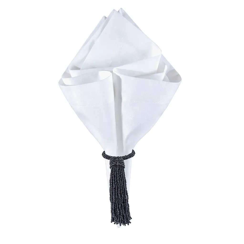 Beaded Tassle Hematite Napkin Ring Set Of 6 - Set Of 6 - Set Of 6 - Set Of 6