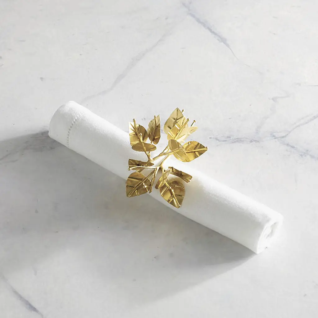 Elevate your entertaining with this stylish Bee on Branch Napkin Ring. Crafted out of brass with a nickel-plated gold finish, this rustic-looking napkin ring is accented with a beautifully sculpted and textured golden bumblebee for an eye-catching addition to any dinner table. Other styles of napkin rings also available.