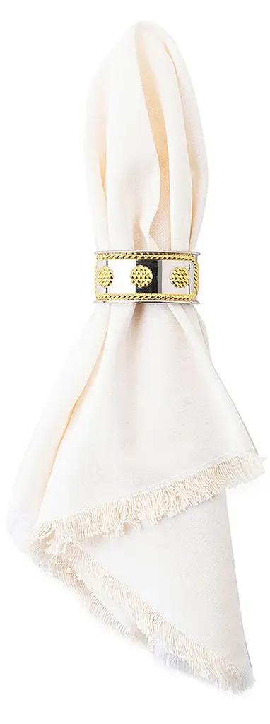 Gold plating calls attention to Juliska's timeless Berry & Thread motif adorning this napkin ring.