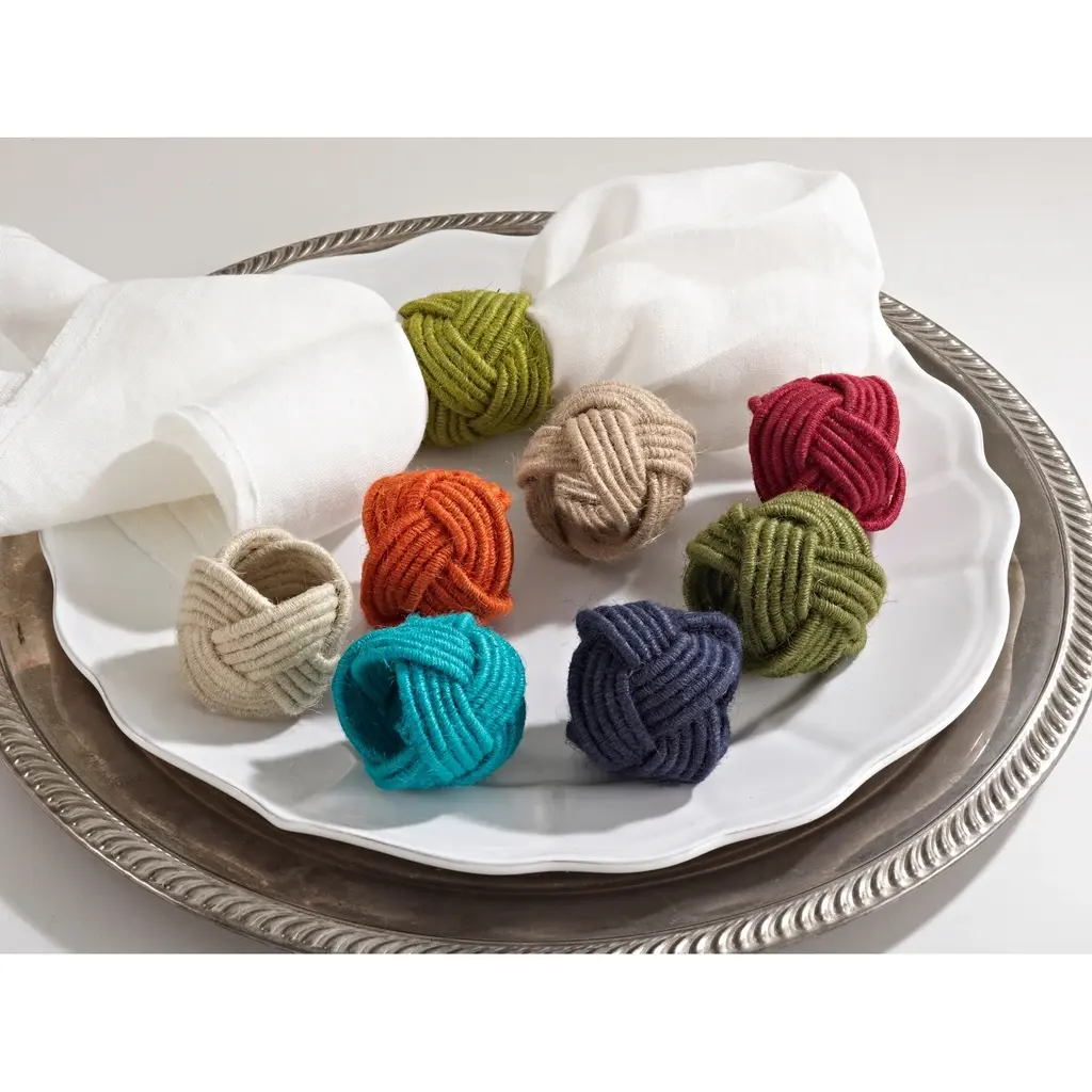 Set an earthy, natural tone in your dining space with this set of four napkin rings by Saro Lifestyle. The 100-percent jute material ensures strength and longevity with extended use, and the braided design adds multi-textural appeal to everyday dining or a cocktail party with friends. Colors available: Chartreuse, Ivory, Navy Blue, Pumpkin, Turquoise, Green, Natural, Red Dimensions: 3 inches wide x 3 inches long Materials: 100-percent jute Care: Spot clean Quantity: Four (4) napkin rings per color