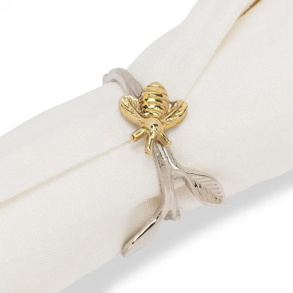 Bring eclectic charm to your table with these Bumblebee napkin rings. The golden metal rings are detailed with intricate wings and faux jewel embellishments. Pair the set of four with your favorite napkins to create a custom look.Features: