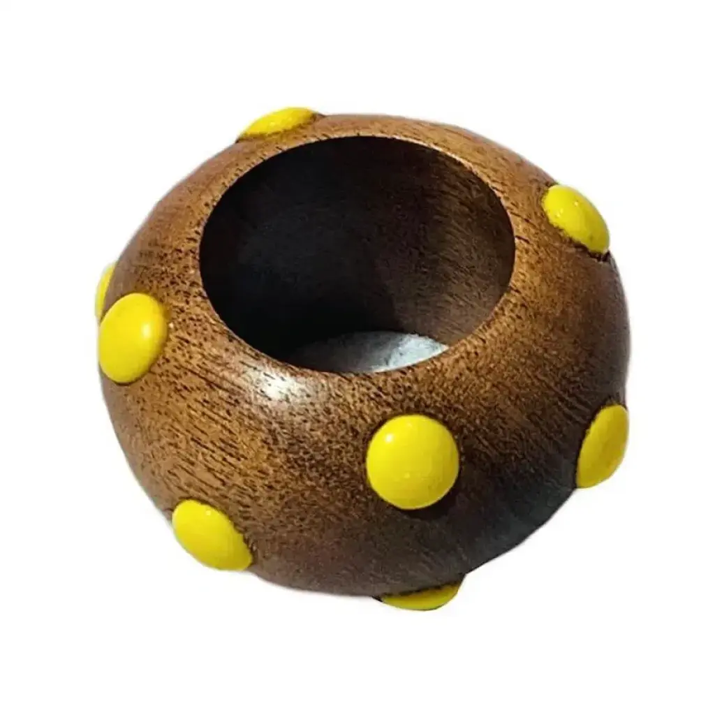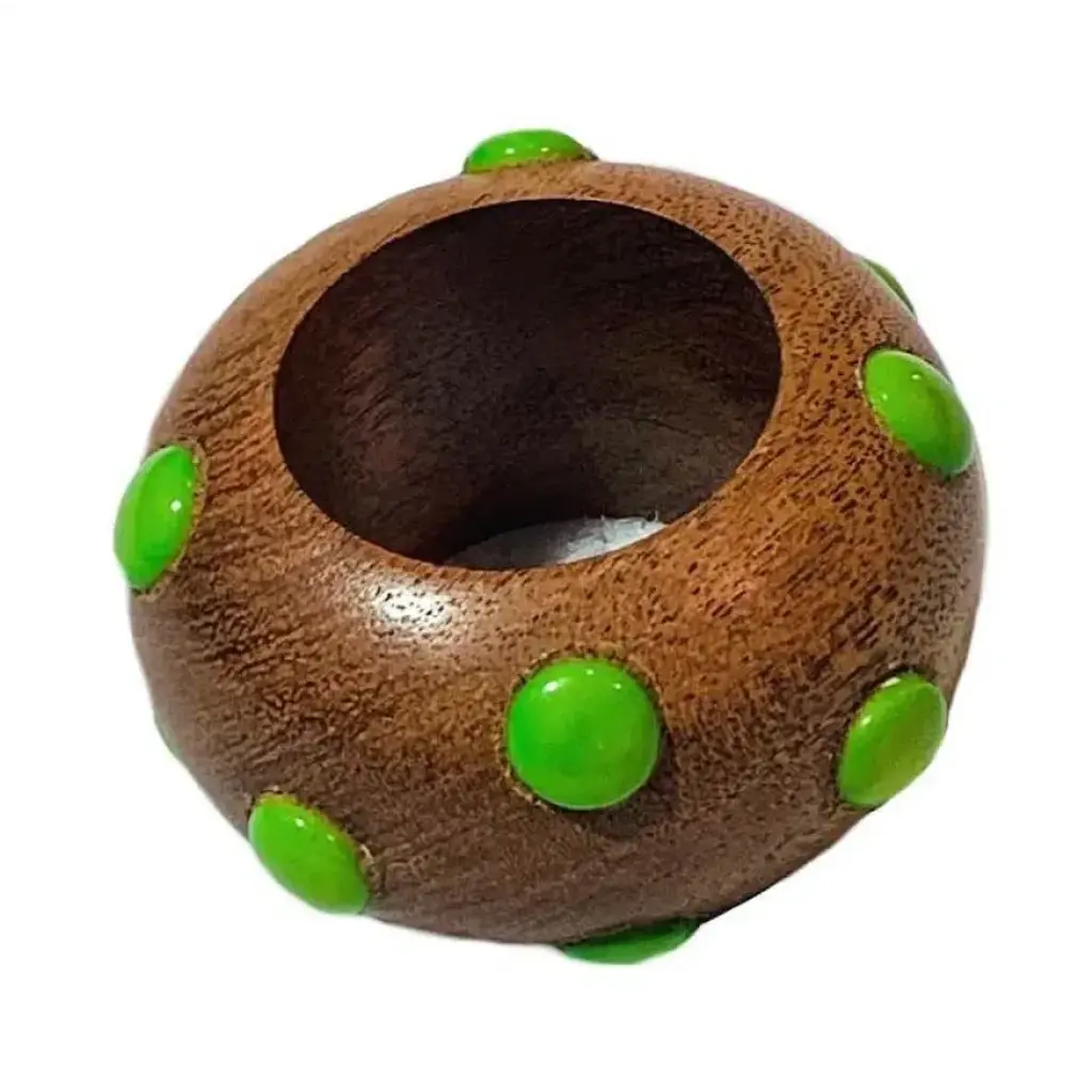 These fun and festive napkin rings stand out thanks to the colorful dots along the natural wooden base that create a remarkably contemporary motif. The Candy Dots Napkin Rings remind us of having a sweet treat with a passionate following among candy lovers of all ages. The strong silhouette and festive look make Candy Dot Napkin Rings a versatile statement piece that instantly dresses up a table. Available in a variety of colors to match any decor.