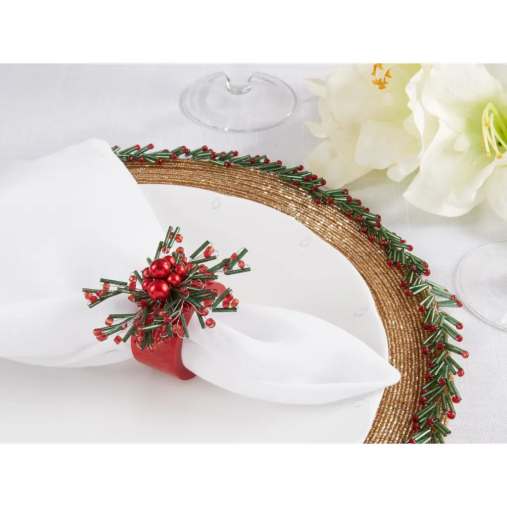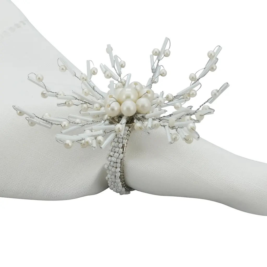 Elevate your table setting with this set of Beaded Napkin Rings. The intricate beading and stunning design add a touch of sophistication and elegance to any occasion, from formal dinners to special events. Made from high-quality materials, these napkin rings are perfect for adding a pop of sparkle and texture to your table setting. The glamorous design will leave a lasting impression on your guests.Features: