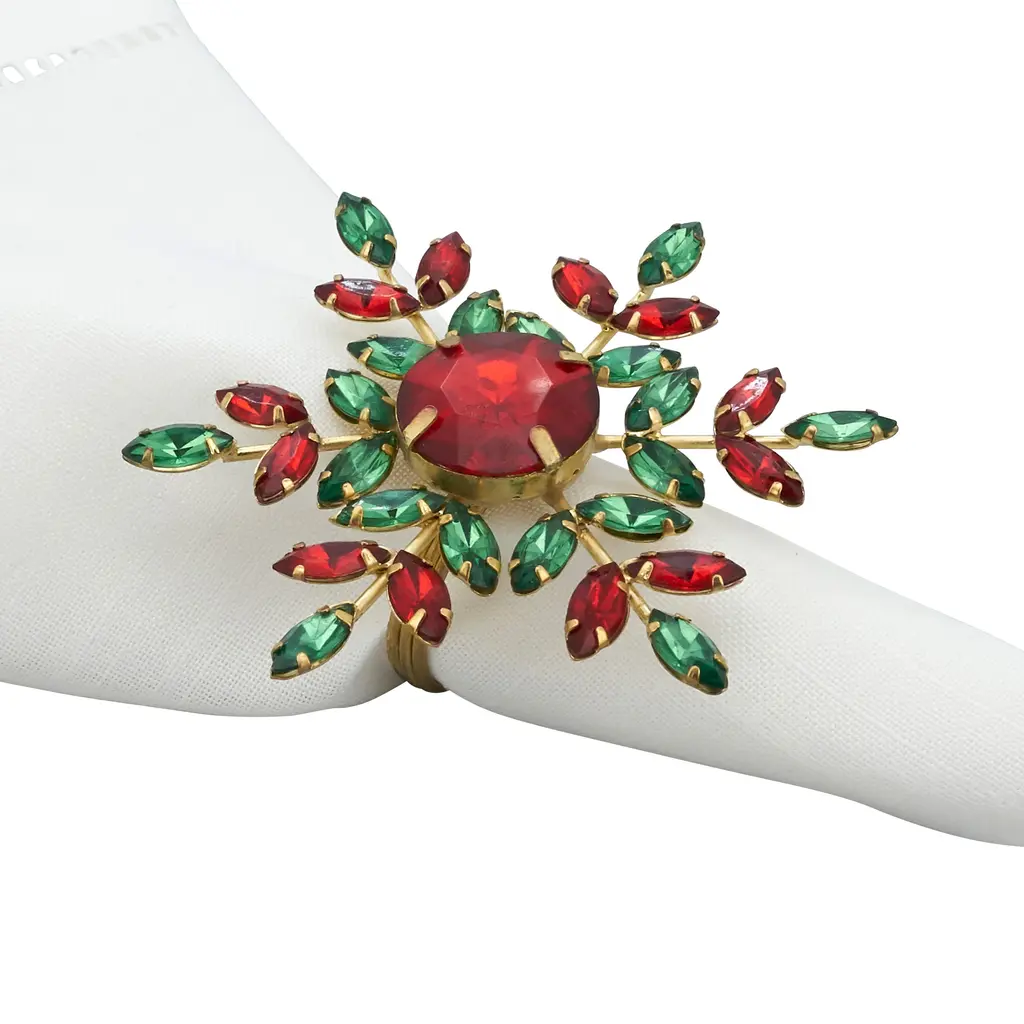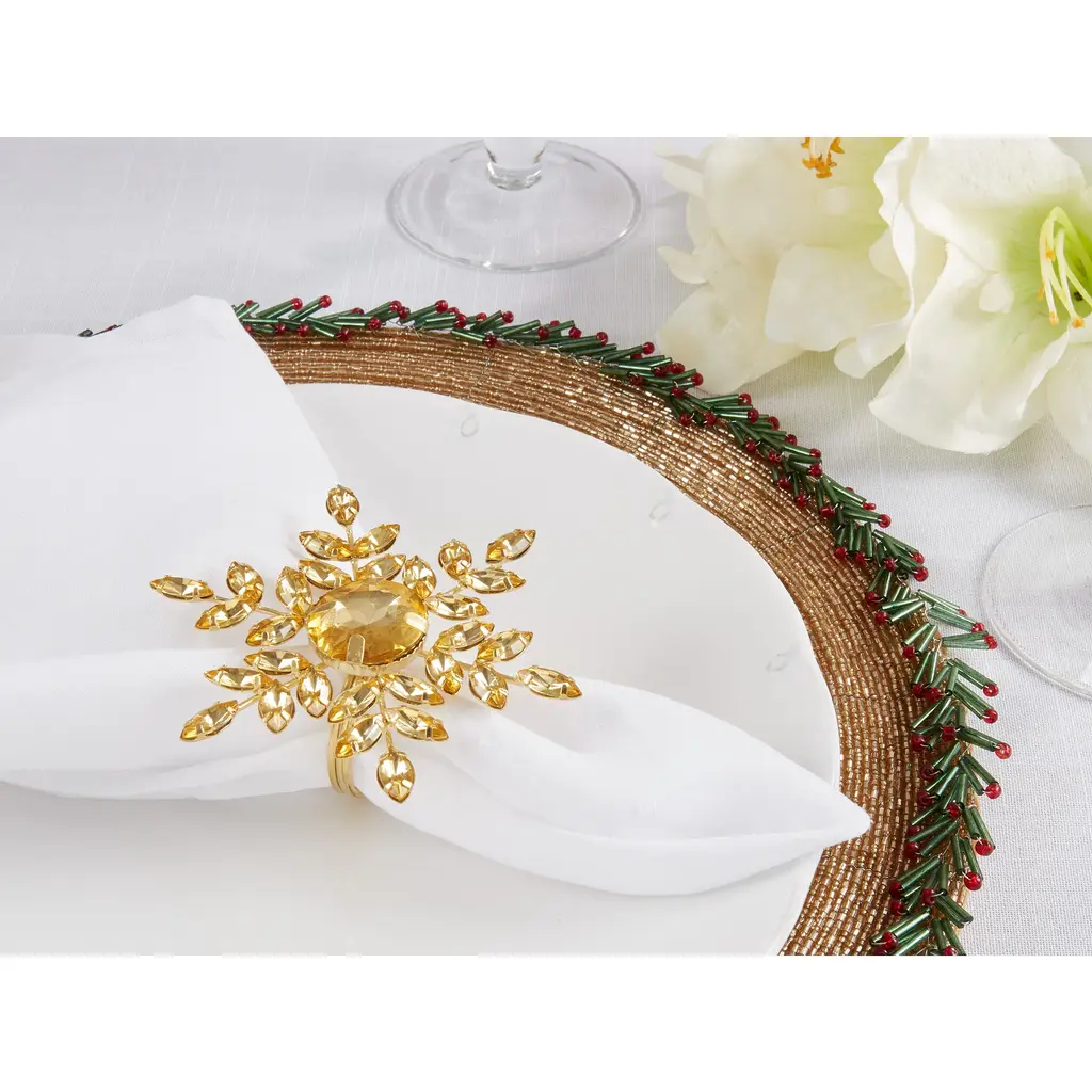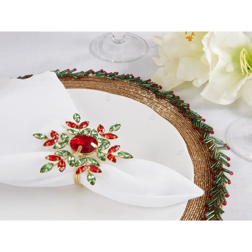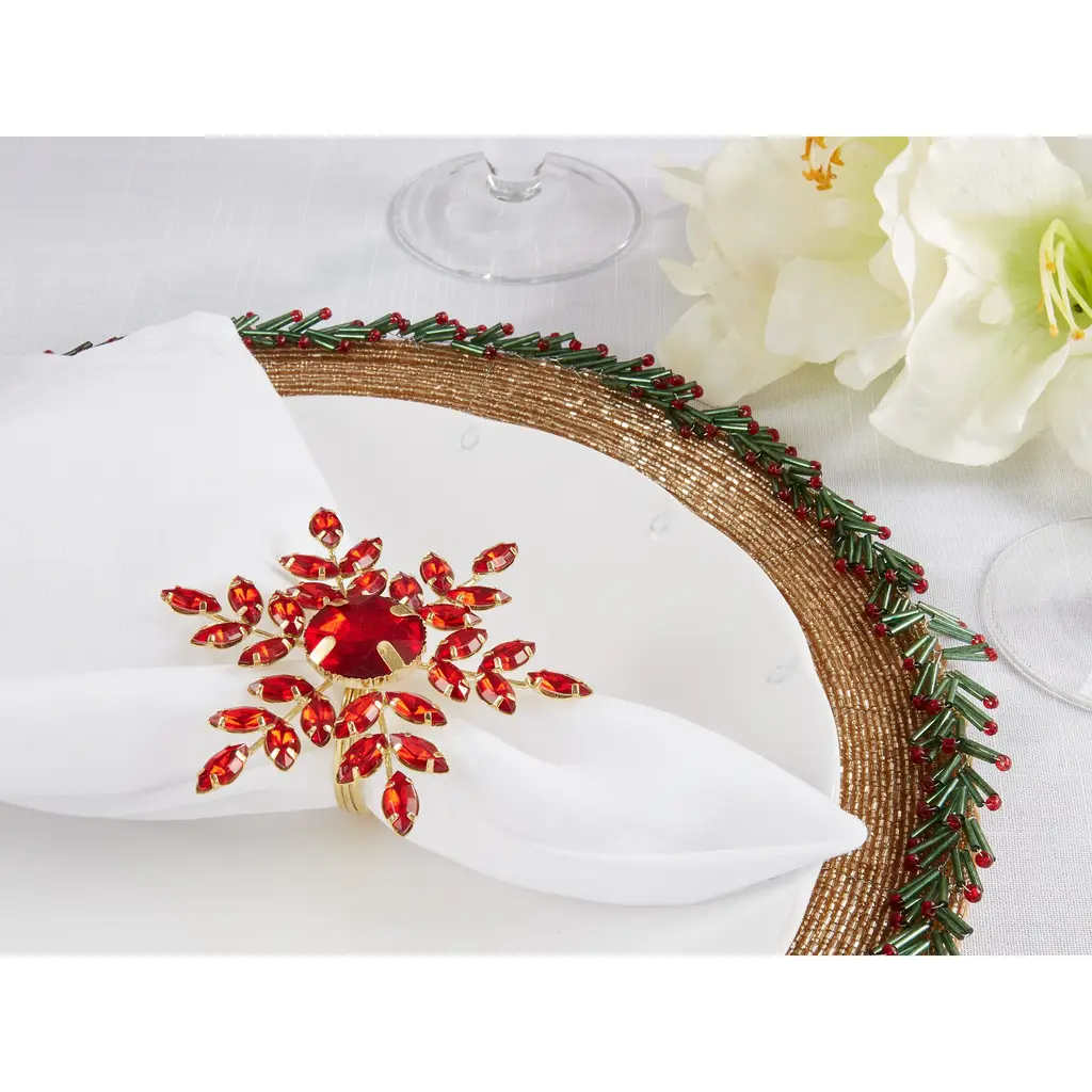 Elegant Frost Beaded Snowflake Napkin Ring (Set Of 4) - Set Of 4 - Red/green