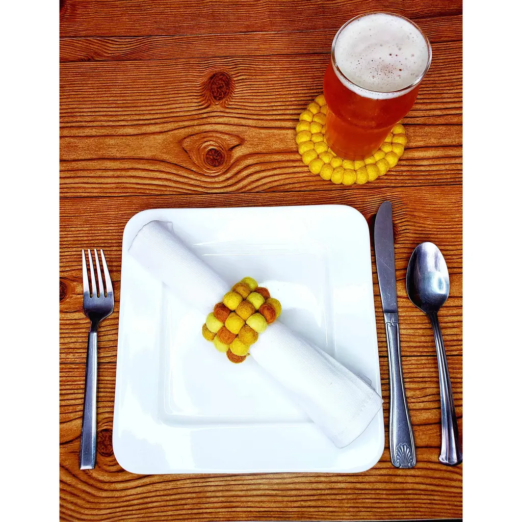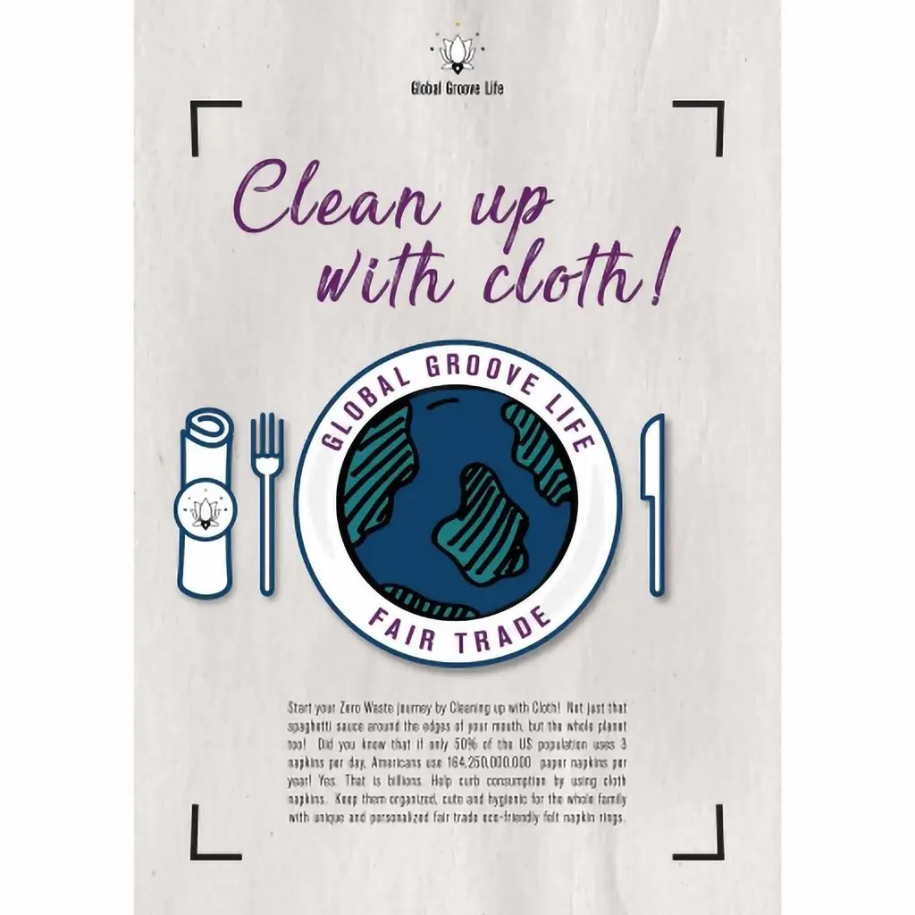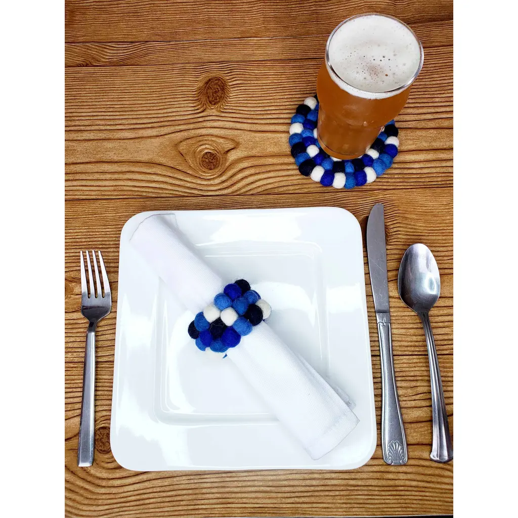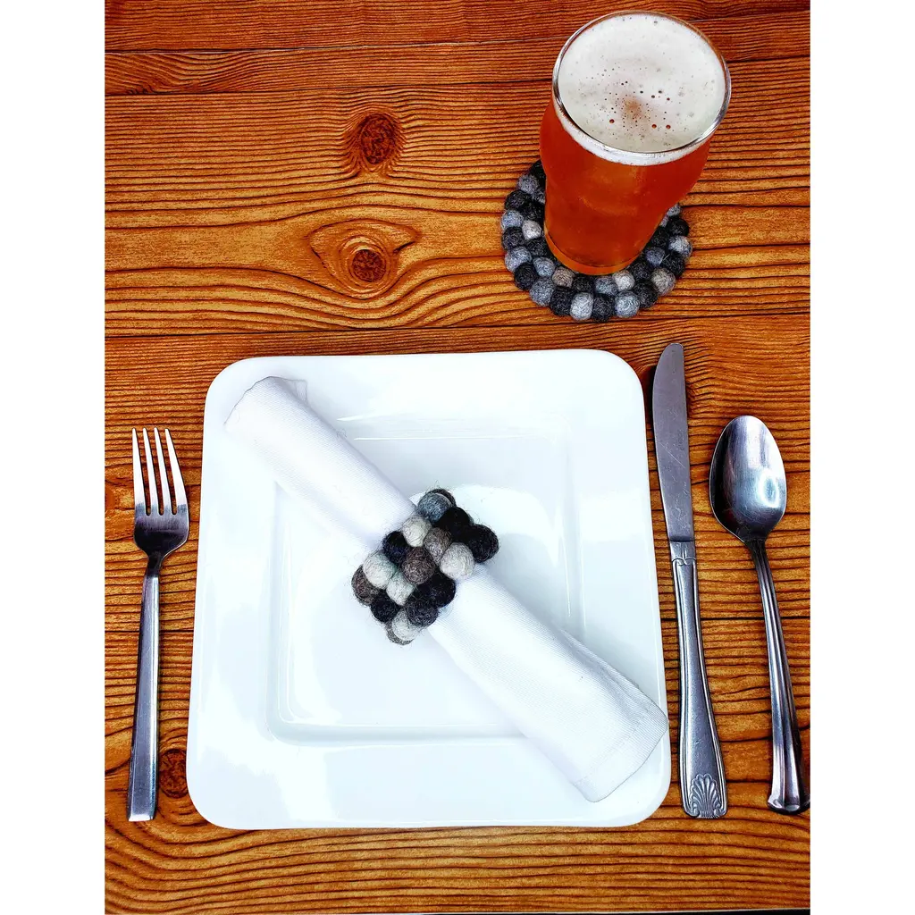Keep your cloth napkins organized, cute, and hygienic for the whole family with these handmade felted wool napkin ring holders! Crafted from fine New Zealand wool and azo-free dyes using age-old techniques. Handmade in Nepal by a Fair Trade women's cooperative. Set of 4. Measures: Approx. 2.5-3 with 1.5 ring to hold the napkin. 100% All Natural New Zealand Wool. Azo-free dyes. Due to the handmade nature, there will be variations in size up to 1/2 inch, color, and shape. Each piece is truly a unique work of art, lovingly crafted by hand. Care: Spot clean as needed. Do not machine wash or dry. The Art of Felting: The first step to creating these beautiful felt pieces begins with gathering some of the world’s finest sheep’s wool from New Zealand. Making felted wool is an ages-old, time-consuming process of bonding fabric with fiber. This is a physical job where the artisan’s scrub, rub, roll and rinse the wool again and again with soapy water. Once the wool is bound into a sheet and the desired thickness is complete, the felt is laid out to dry. From there, the felt wool is cut and re-worked into many complex shapes and designs. The many sheets of wool might merge several colors to create patterns and layers. This takes a well-trained, talented artisan and is a true labor of love. The end results are colorful, one-of-a-kind textiles that are stunning to behold. Global Groove is a fair trade organization working with women by supporting and developing artisan co-ops in Thailand and Nepal. The Fair Trade industry is expanding and we are proud to be a part of a sustainable movement that is changing lives. We design, develop, produce and source fairly traded lifestyle products with a commitment to the sustainability of production and the cultural heritage of the artisan groups. We inhale its people, its landscapes, its colors, its flavors, its very scent, and we exhale to create inspirational products symbolic of our traveling experiences. Global Groove encourages travel because the knowledge, acceptance and understanding of different ways, people and ideas is the very colorful road to a respectful, safer, kinder world.