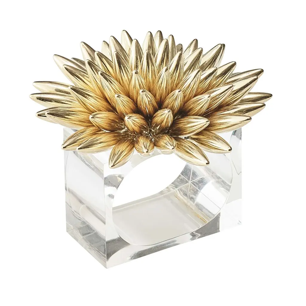 Flare Hollywood Regency Gold Brass Napkin Ring - Set Of 4