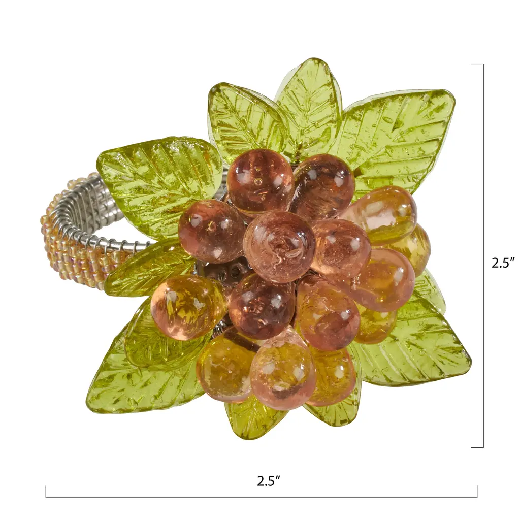 Flower And Leaves Design Beaded Napkin Rings (Set Of 4) - Amber