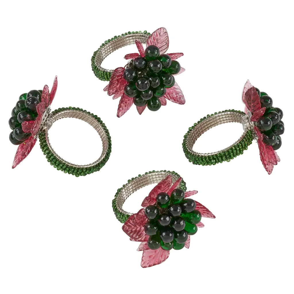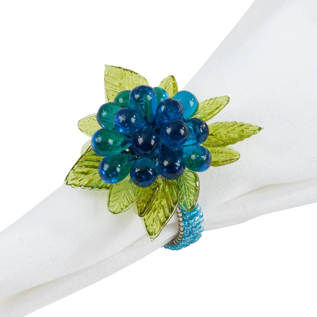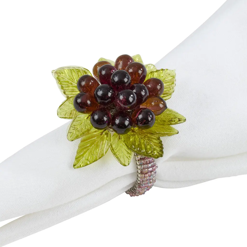 Using beautiful beads for both the ring and the flower top, this lovely set of beaded napkin rings will be you go to accessory for any occasion. Use with soft, light colored tableware for a casual setting and create darker contrast or with patterns for special dinners. Mix and match within the color spectrum.