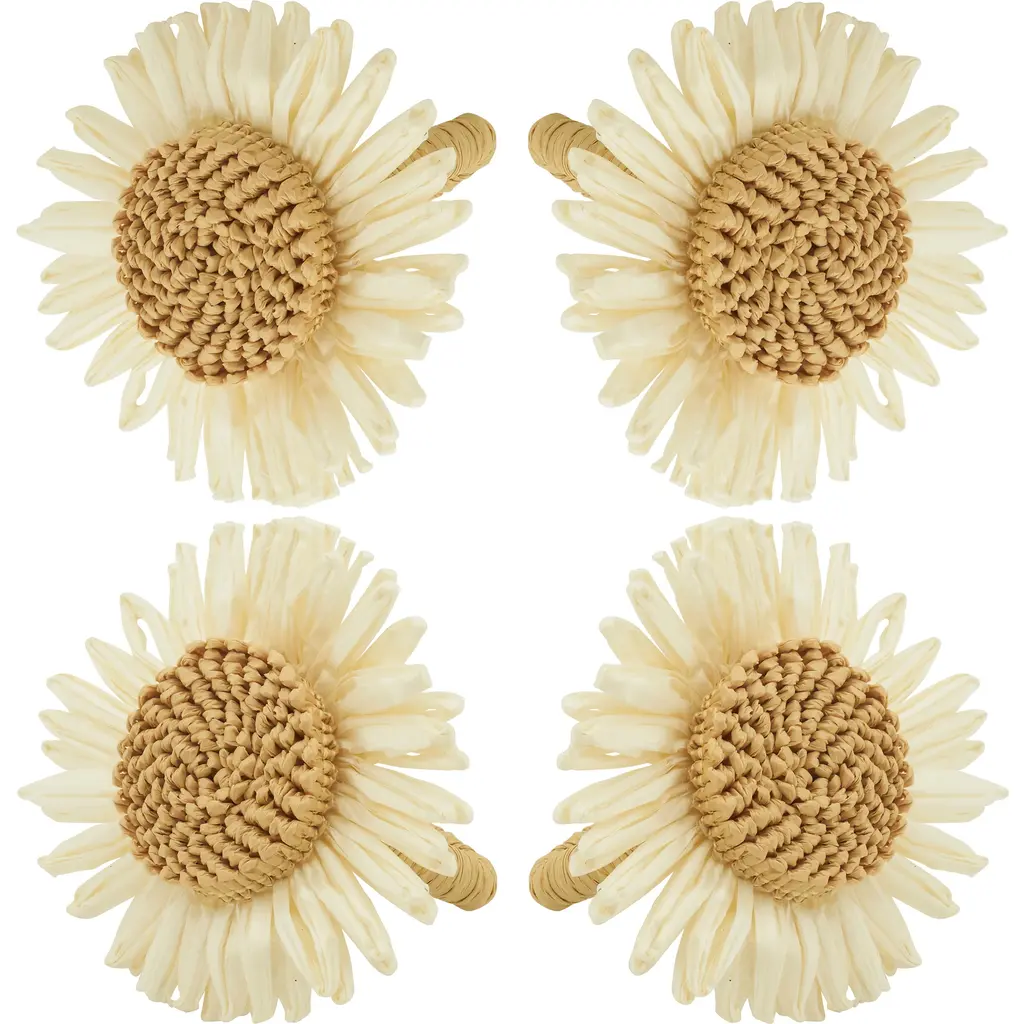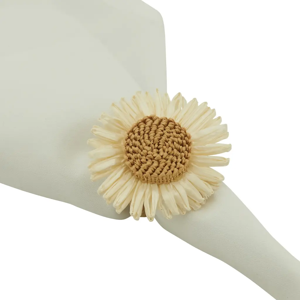 Add a lovely accent to your place settings with these cute Flower Design Napkin Rings, a set of four featuring white flowers that are easy to pair. The woven-like centers bring beautiful texture to each and every place setting. This gorgeous floral napkin ring add a delicate touch to any table decoration, ideal for special occasions and casual entertaining alike.Features: