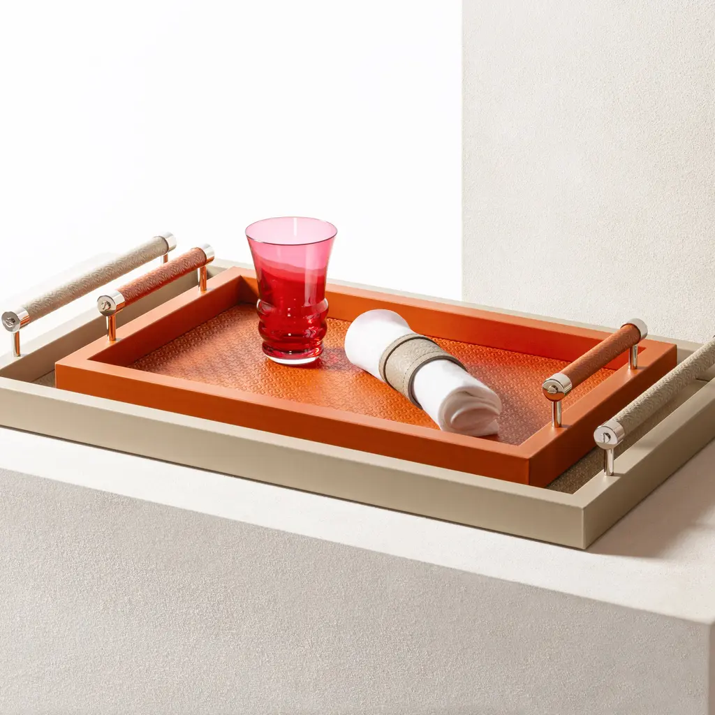 A touch of haute couture for your tabletop, the Giobagnara x Elie Saab Monogram Napkin Ring (Set of 4) is a sophisticated creation from the Giobagnara and Elie Saab collaboration. Expertly handcrafted in Italy, each piece in this set of four is crafted entirely from fine, padded leather. The surface is meticulously embossed with the iconic ELIE SAAB Monogram pattern, creating a rich, tactile experience that is both soft and visually striking. A fusion of iconic branding and artisanal craftsmanship, it's a chic statement for any dining occasion. Highlights: