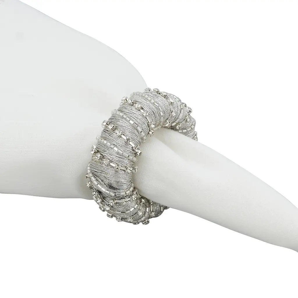 Glamorous Sparkle Beaded Napkin Ring, Set Of 4 - Silver