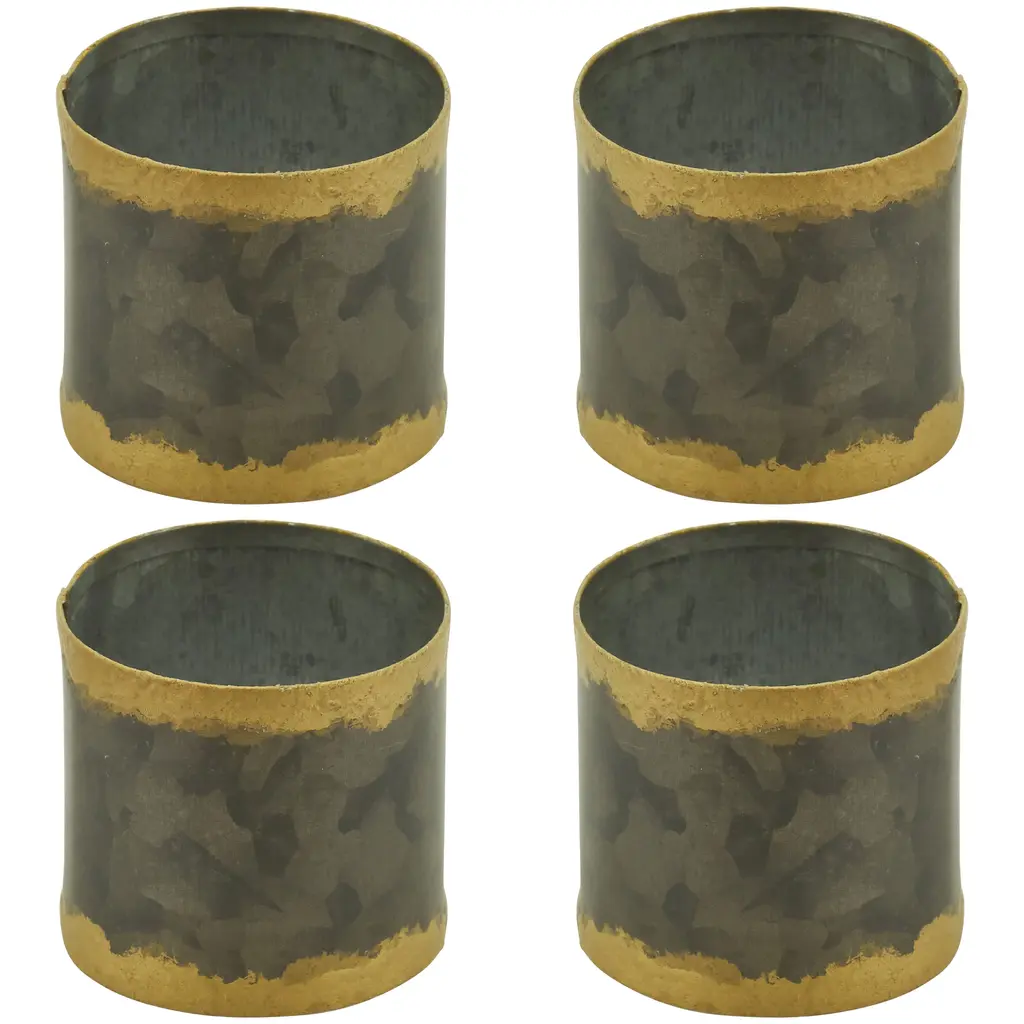 Gold Rim Galvanized Napkin Ring, Set Of 4
