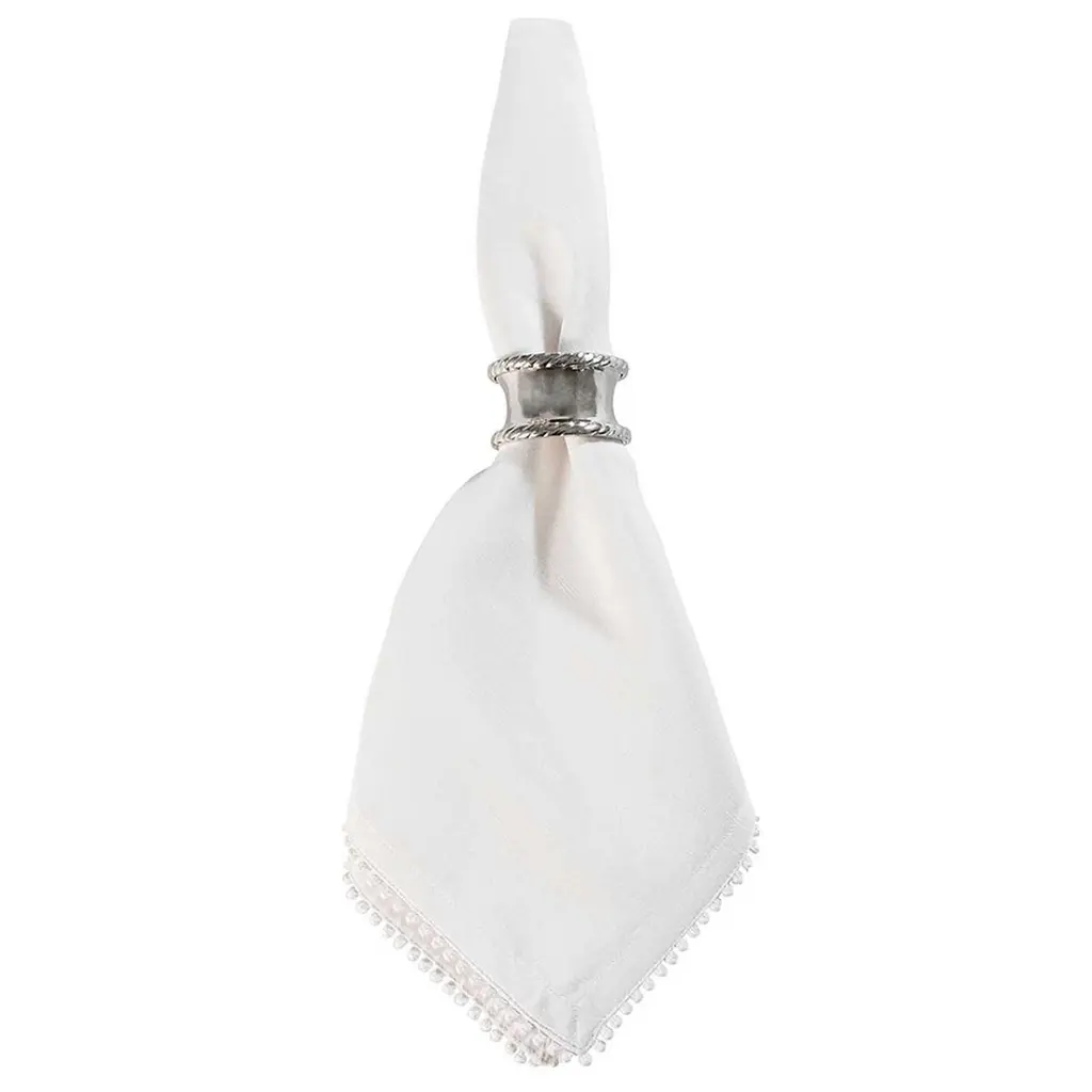 A finishing touch from one of our most popular collections, this napkin ring is forged with hammered stainless steel and bedecked with a tidy trimming of simple thread. Each handmade piece is polished to brilliance and pulls together any table setting to perfection.