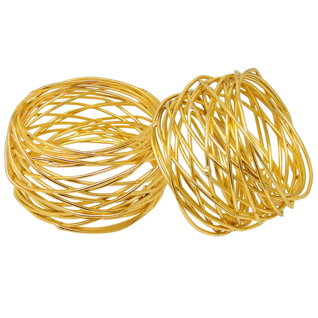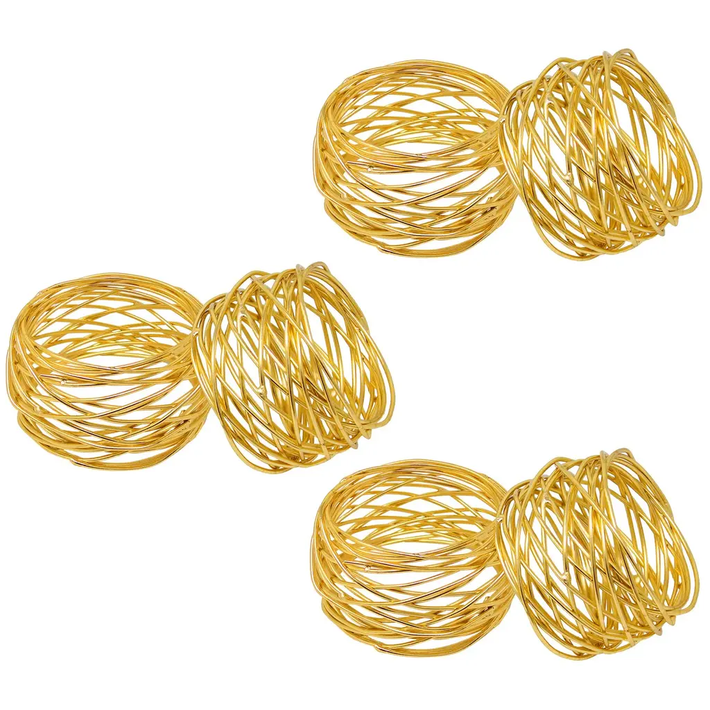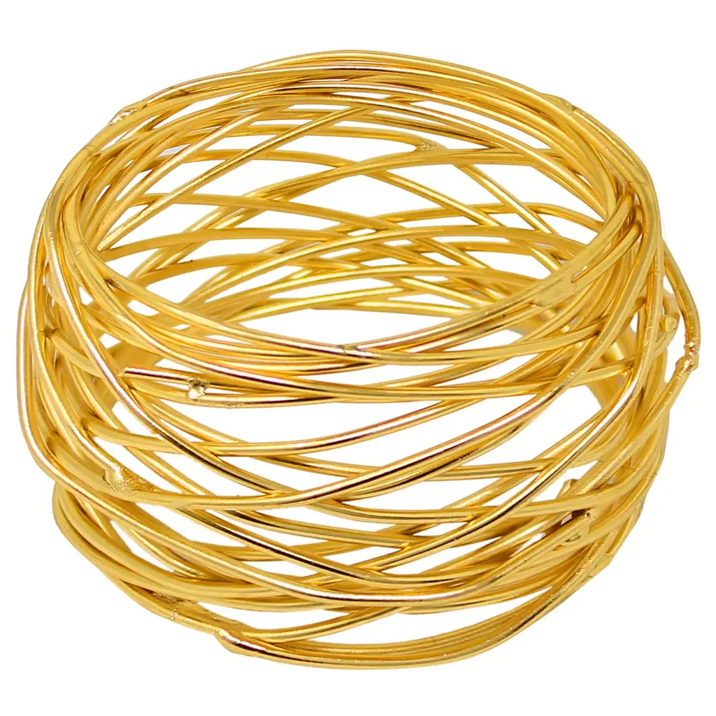 Handmade Artisan Crafted Mesh Metal Dining Napkin Rings Gold - Set Of 6