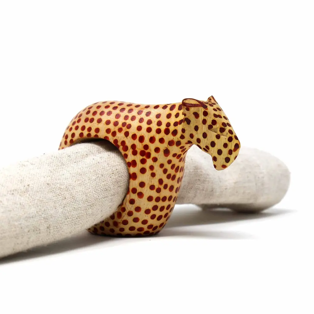 Add a unique look to your dinner table with this set of six handmade safari napkin rings. Fun animal designs create a perfect accent for dinner napkins, and the African mahogany construction delivers an upscale finishing touch. Each piece in this set depicts a different animal for mix-and-match place setting capabilities.