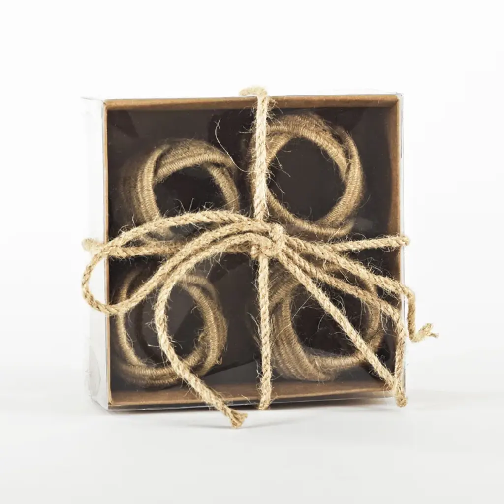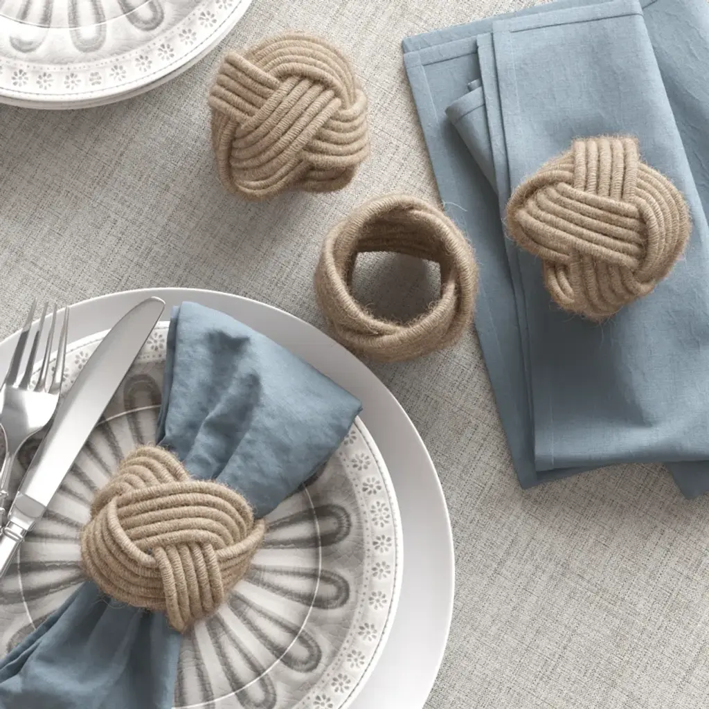 Braided jute napkin rings in a variety of solid colors add texture and style to your tabletop. The classic design makes them ideal for casual dining and can be used both indoors and outdoors. They look great paired with cotton or linen napkins in a contrasting color.