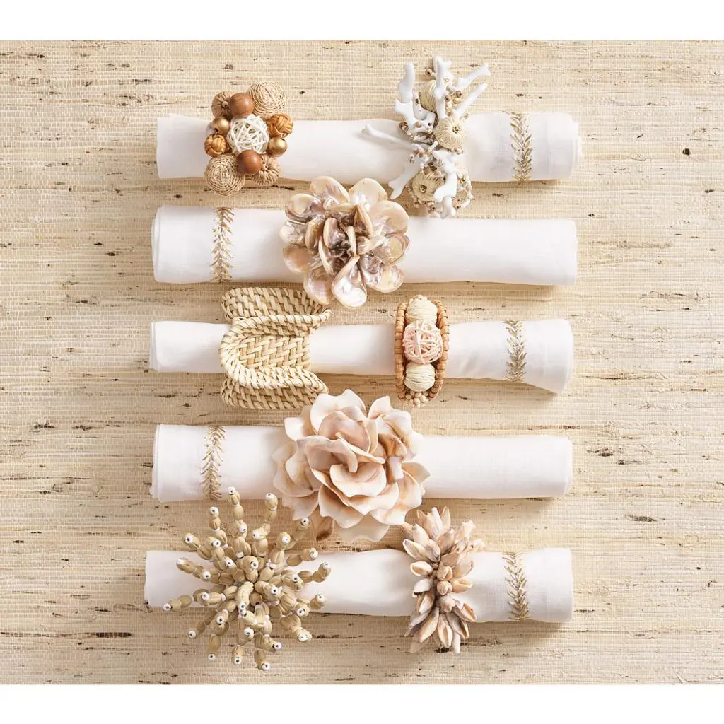 Jacqueline Coastal Natural Ruffle Rattan Napkin Ring - Set Of 4