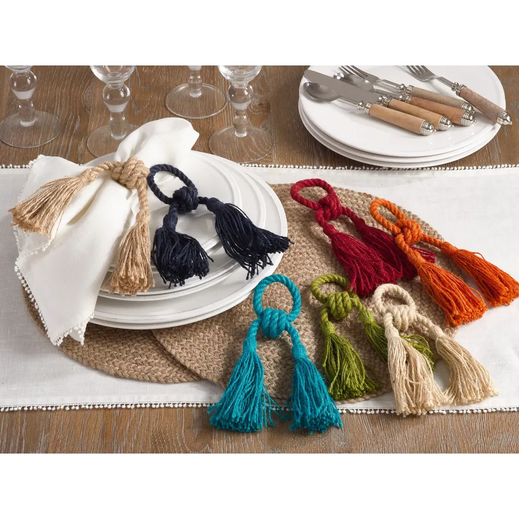 Highly versatile, the Jute Tassel Napkin Rings can bring a classic look to your tabletop, or a contemporary style depending on the occasion. The set can be easily dressed up or pared down and paired with a wide range of tableware and napkins. The tassels bring beautiful texture to each place setting, a lovely accent for the table.Features: