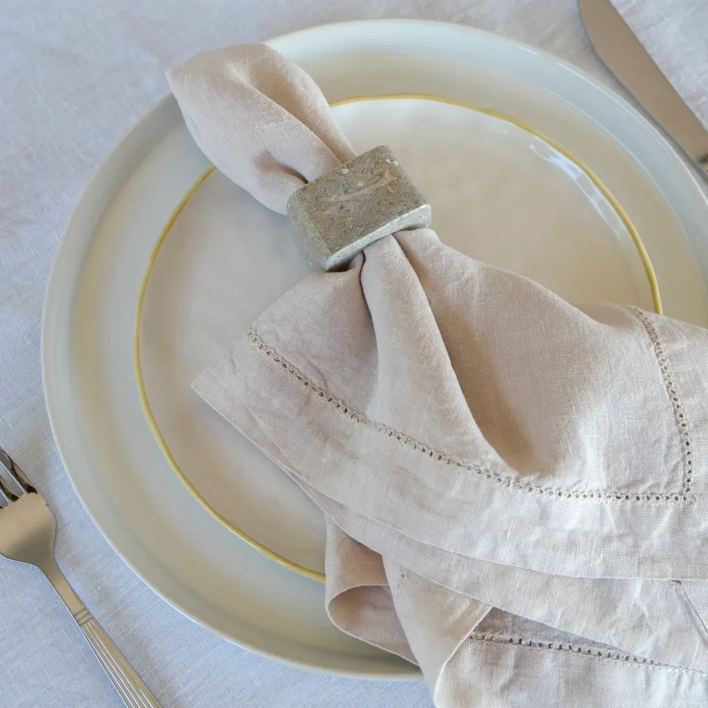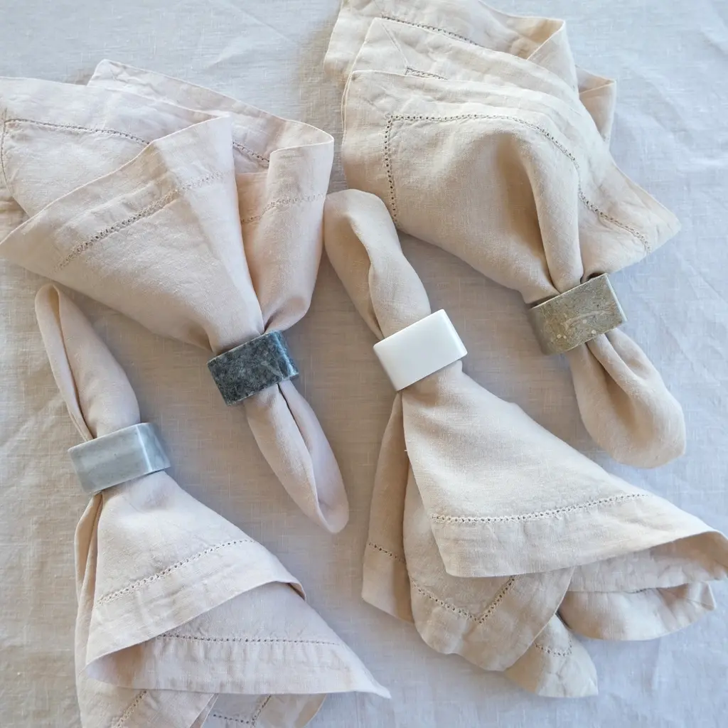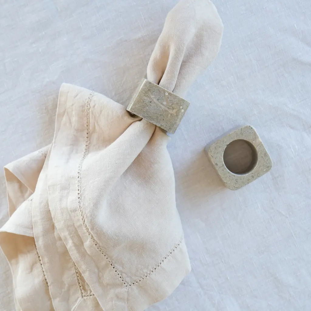 Add a touch of luxury to your dining decor with the Kai Marble Napkin Ring Set in Rustic. Featuring a distinctive square shape with a round cutout, these marble napkin rings make a striking statement on any table. Crafted for special occasions and dinner parties, they are designed to impress and leave a lasting impression. Each set includes two napkin rings, perfect for enhancing the overall look of your table setting.