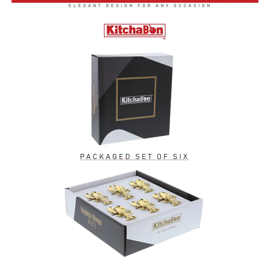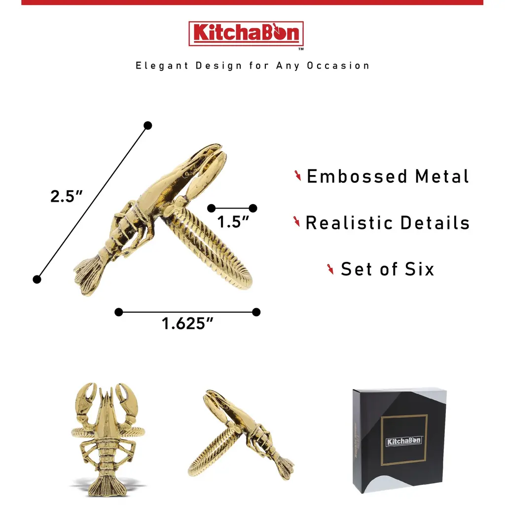 Kitchabon Lobster Gold Napkin Rings For Table Decor - Set Of 6 - 2.3 X 1.3 X 1.65 Inches - Set Of 6 - 2.3 X 1.3 X 1.65 Inches