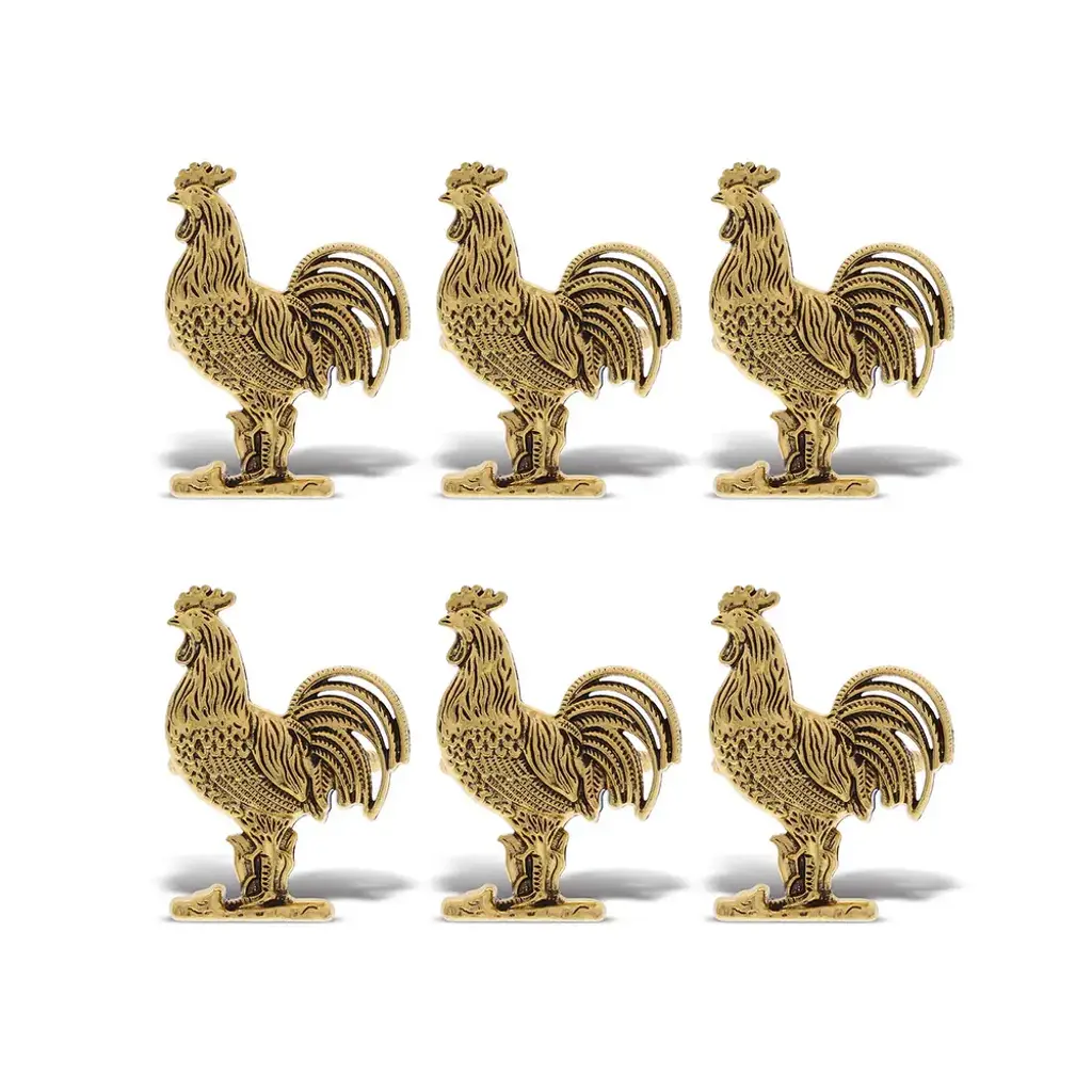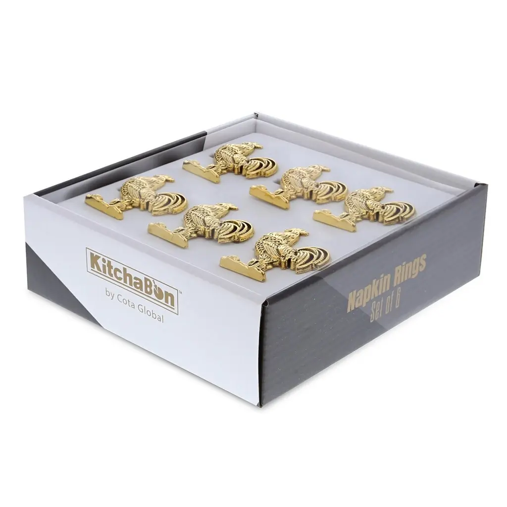 Kitchabon Rooster Gold Napkin Rings For Table Decor - Set Of 6 - 2.5 X 1.75 X 1.65 Inches - Set Of 6 - 2.5 X 1.75 X 1.65 Inches