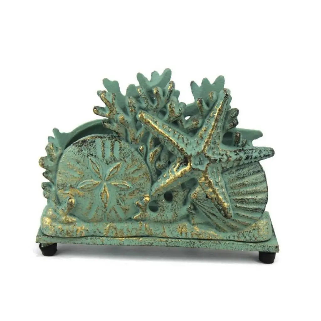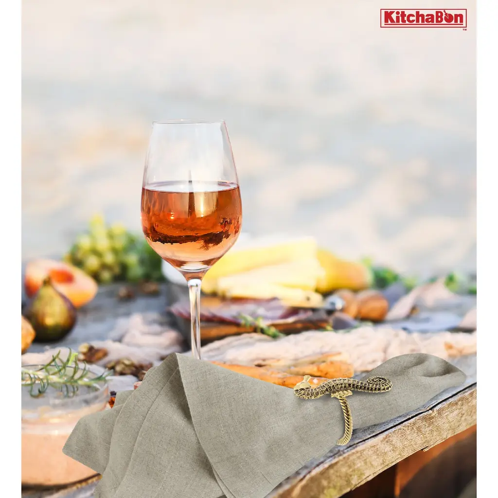 L'objet Coral Coastal Beach Red Enamel Gold Plated Napkin Ring - Set Of 4