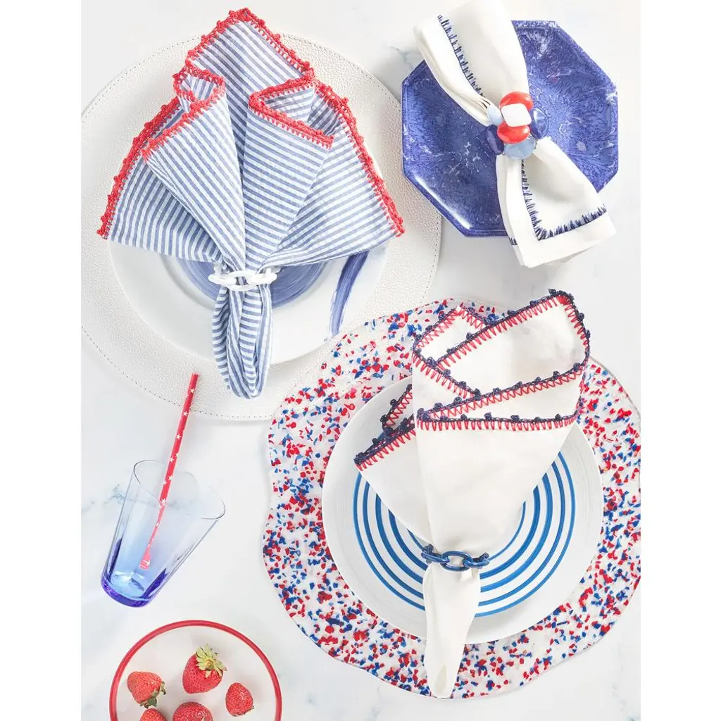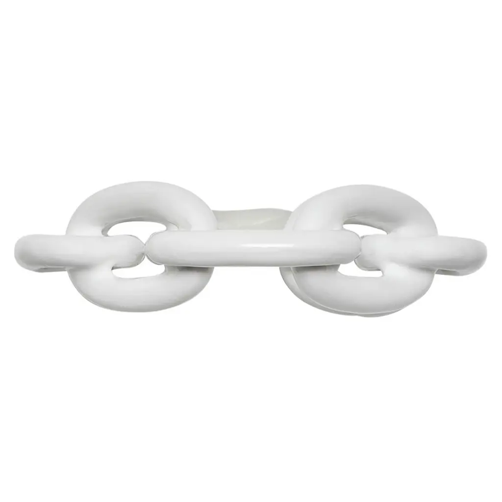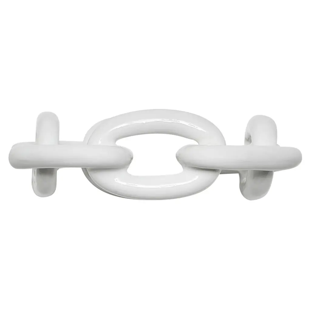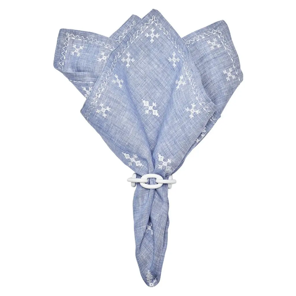 Lucy Enamel White Metal Chain Link Napkin Ring - Set Of 4