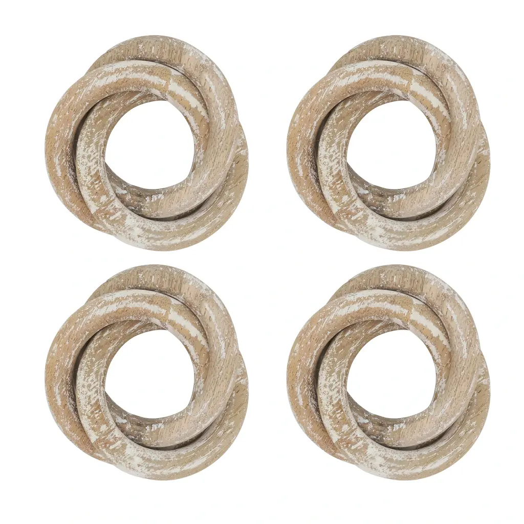 Mango Wood Napkin Rings With Interlock Design (Set Of 4) - White - Set Of 4