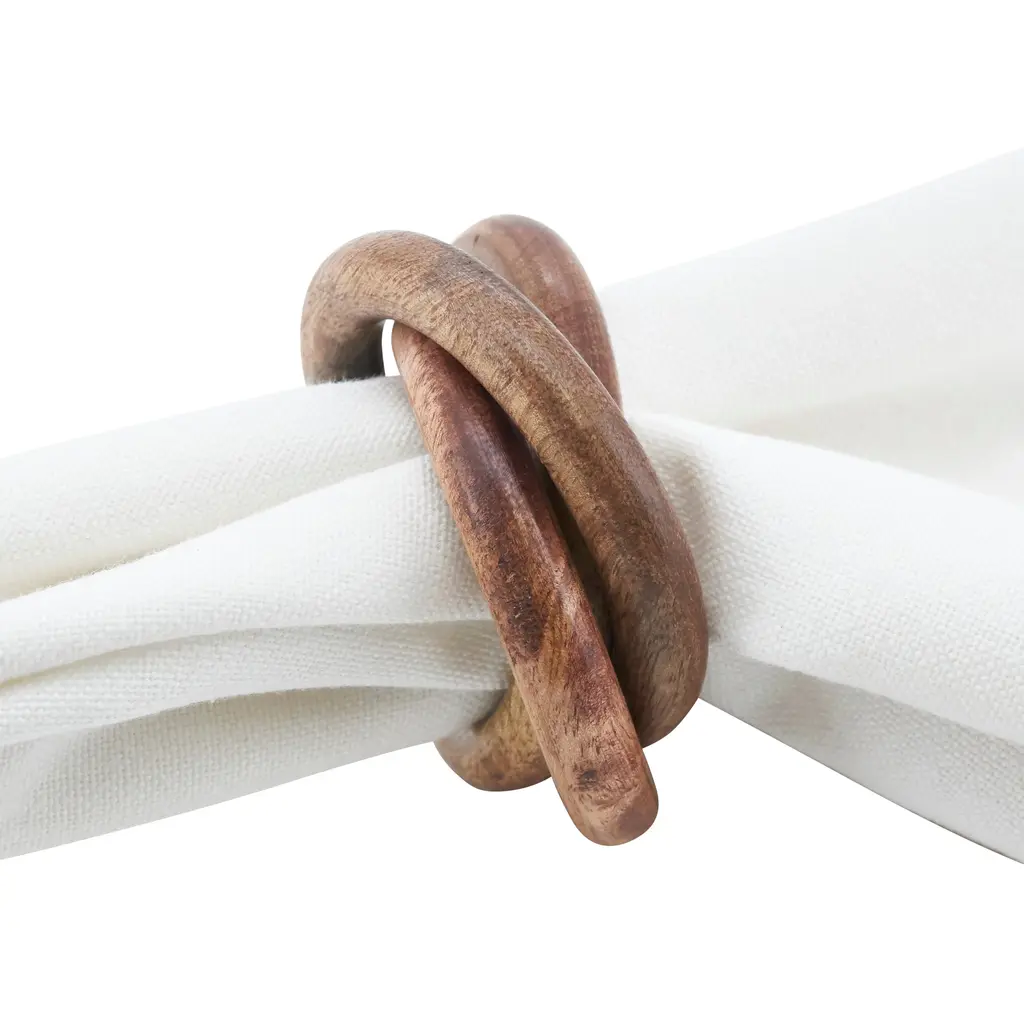 Let nature inside your home with these beautiful and stylish Wooden Interlock Napkin Rings. Their sturdy, heavy construction brings texture and dimension to your table décor. The set is easy to pair with a very wide array of dinnerware.Color: Features: